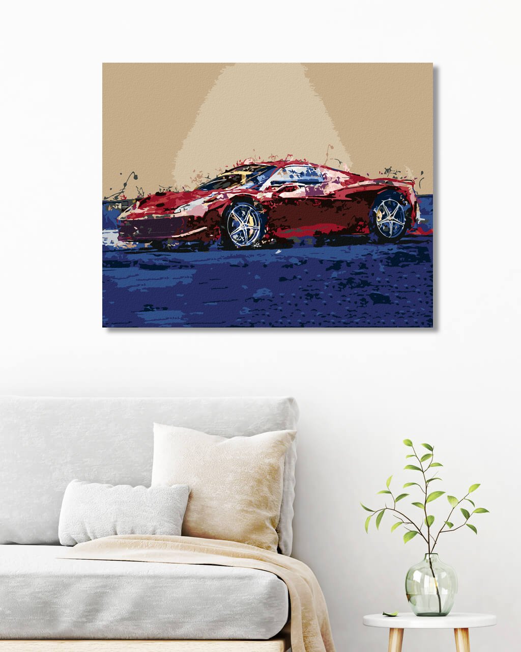 Maľovanie podľa čísel - ČERVENÉ ABSTRAKTNÉ AUTO FERRARI