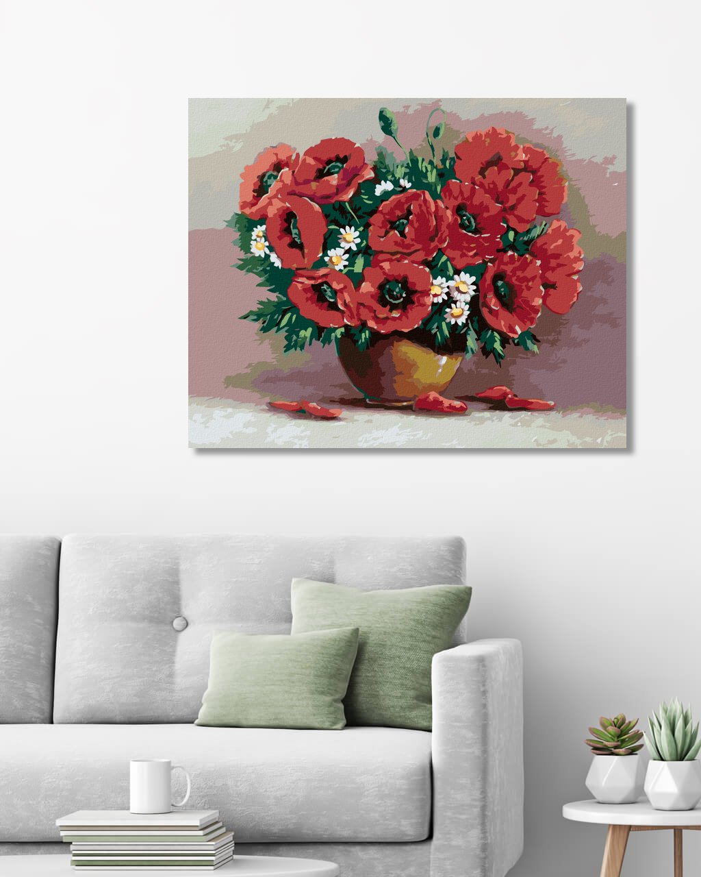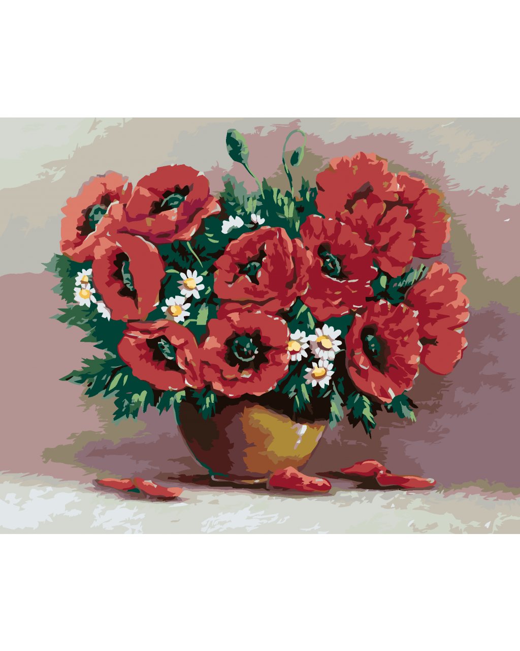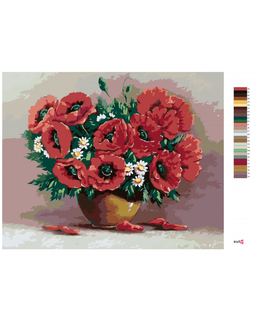 Maľovanie podľa čísel - ČERVENÉ KVETY V HNEDEJ VÁZE