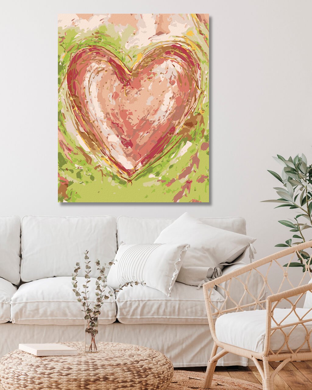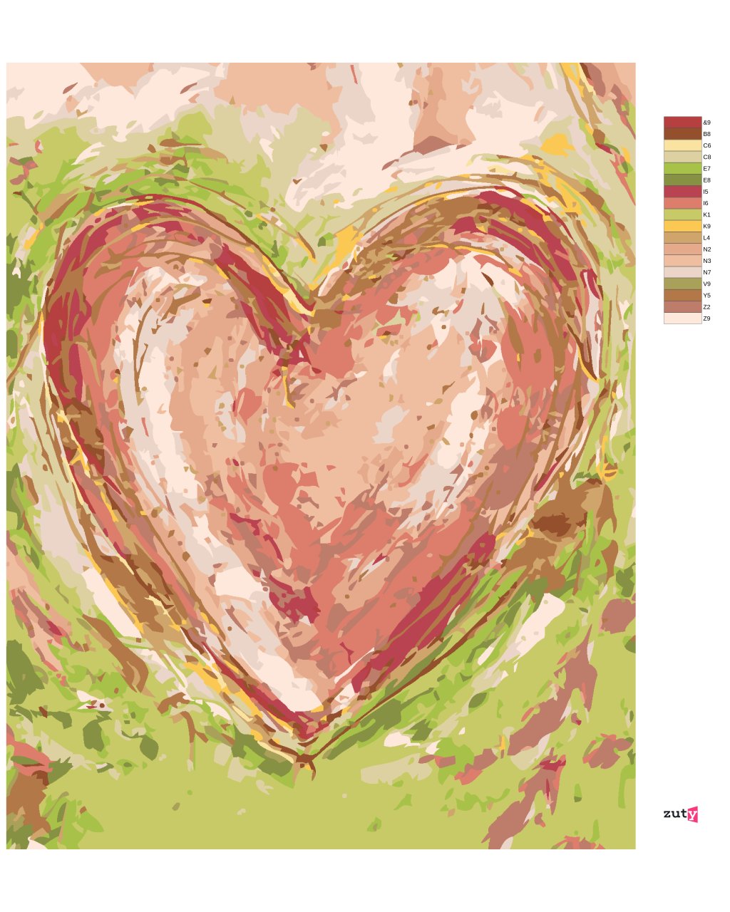 Maľovanie podľa čísel - ČERVENÉ SRDCE NA ZELENOM POZADIÍ III (HALEY BUSH)