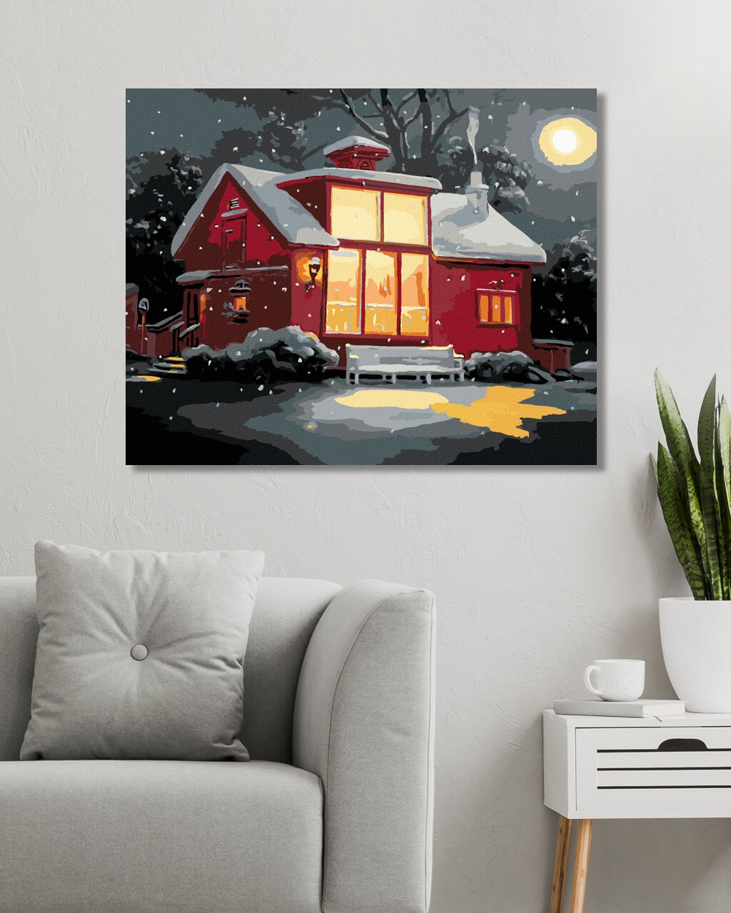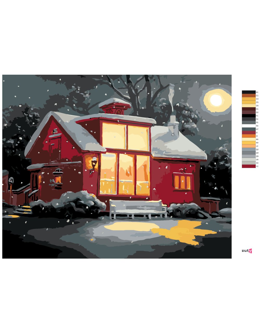 Maľovanie podľa čísel - ČERVENÝ DOM S VEĽKÝMI OKNAMI V ZIME (D. RUSTY RUST)