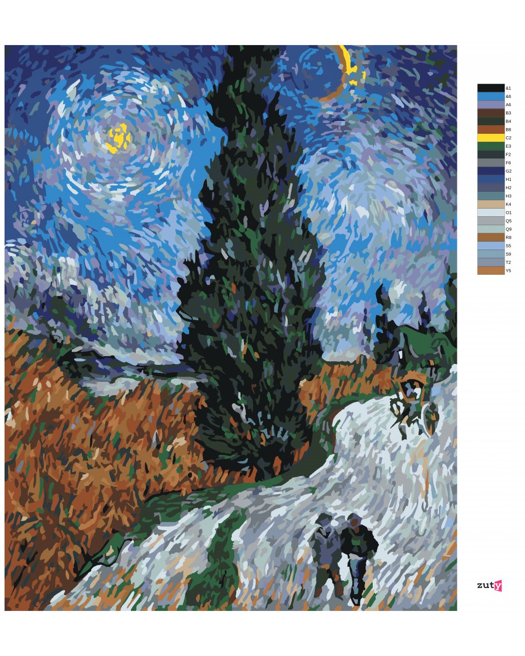 Maľovanie podľa čísel - CESTA S CYPRIŠOM A HVIEZDOU (VINCENT VAN GOGH)