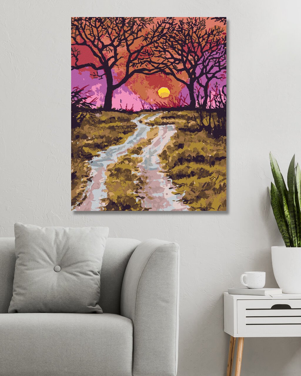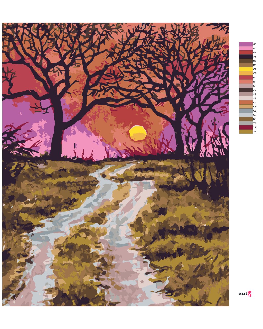 Maľovanie podľa čísel - CESTIČKA NA JESEŇ A ZÁPAD SLNKA