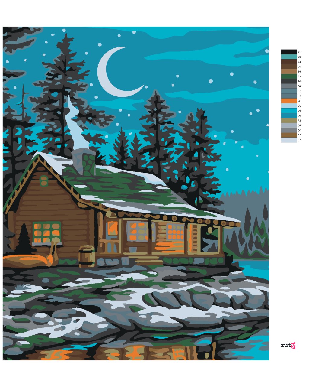 Maľovanie podľa čísel - CHATA POD NOČNOU OBLOHOU