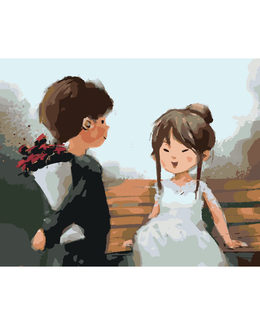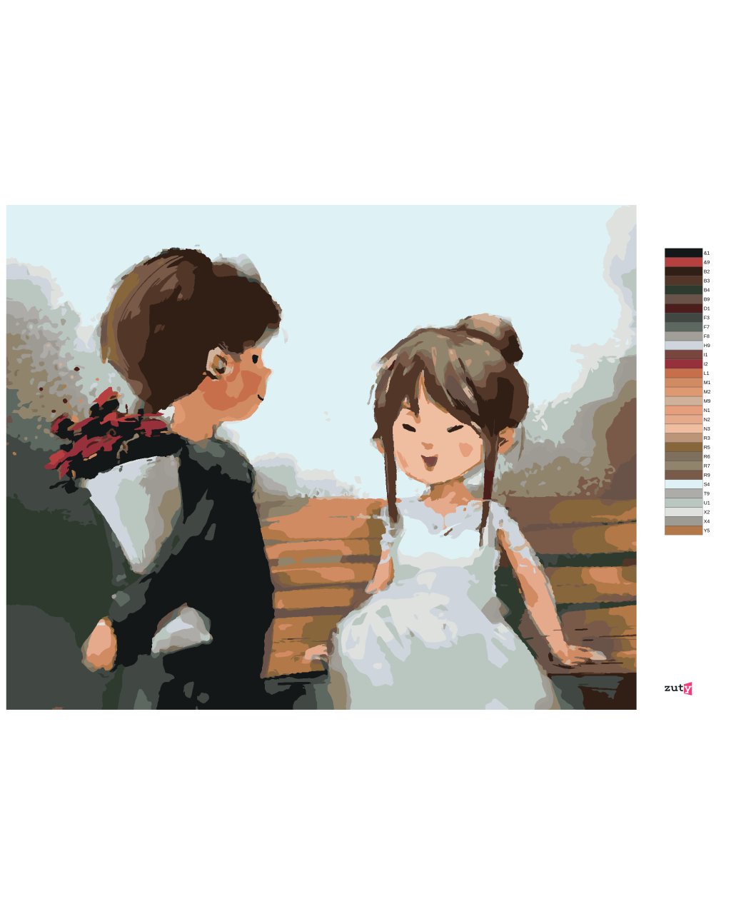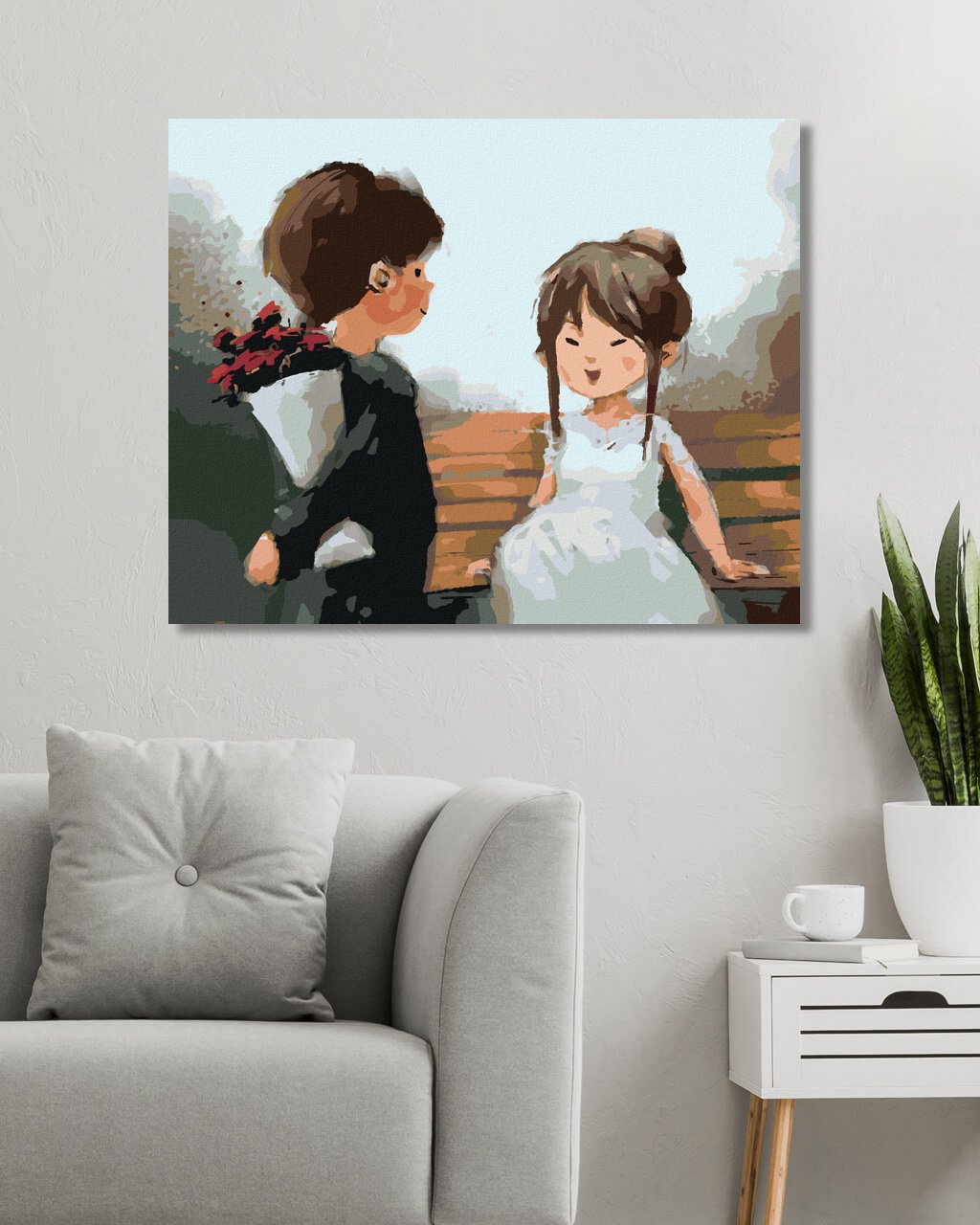 Maľovanie podľa čísel - CHLAPEC ODOVZDÁVA DIEVČAŤU KVETY