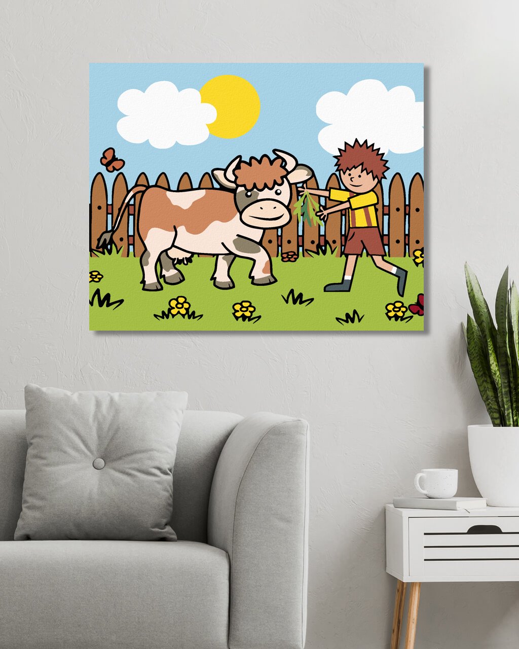 Maľovanie podľa čísel - CHLAPEC S KRAVOU NA PASTVE