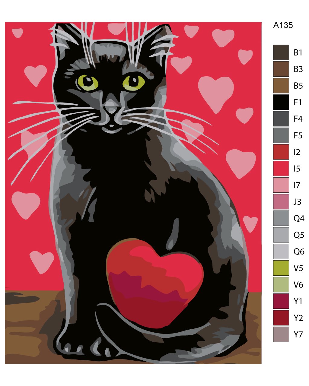 Maľovanie podľa čísel - ČIERNA MAČKA A ČERVENÉ SRDCE