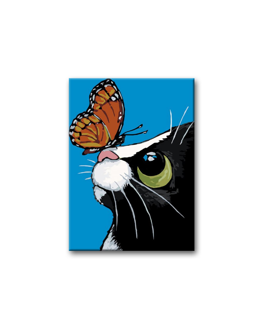Maľovanie podľa čísel - ČIERNE MAČIATKO S MOTÝĽOM