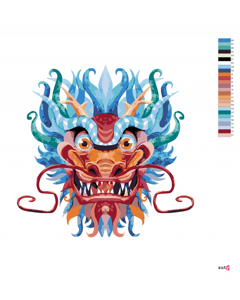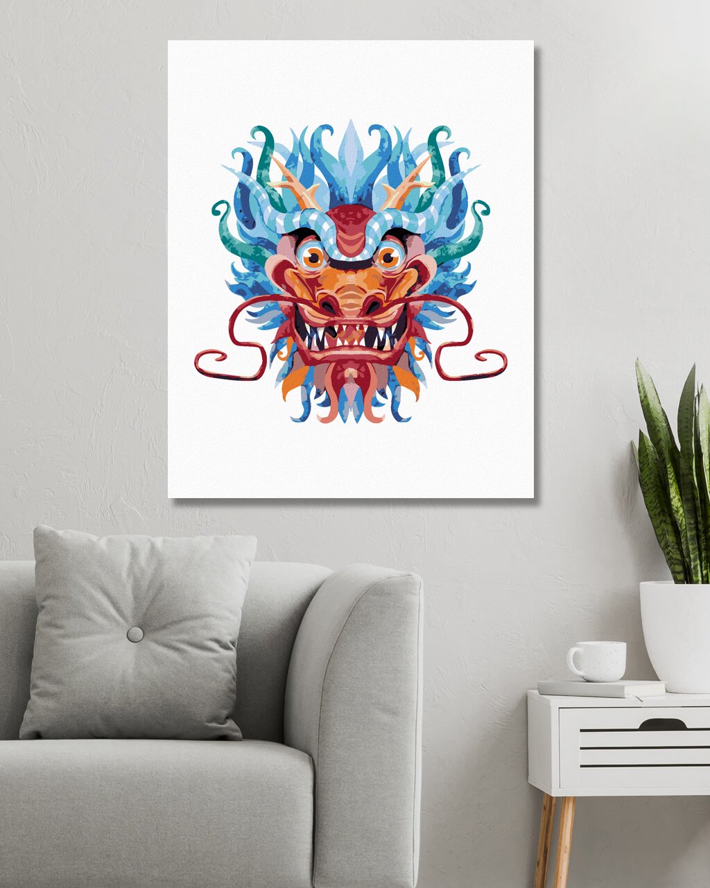 Maľovanie podľa čísel - ČÍNSKY DRAK NA BIELOM POZADÍ