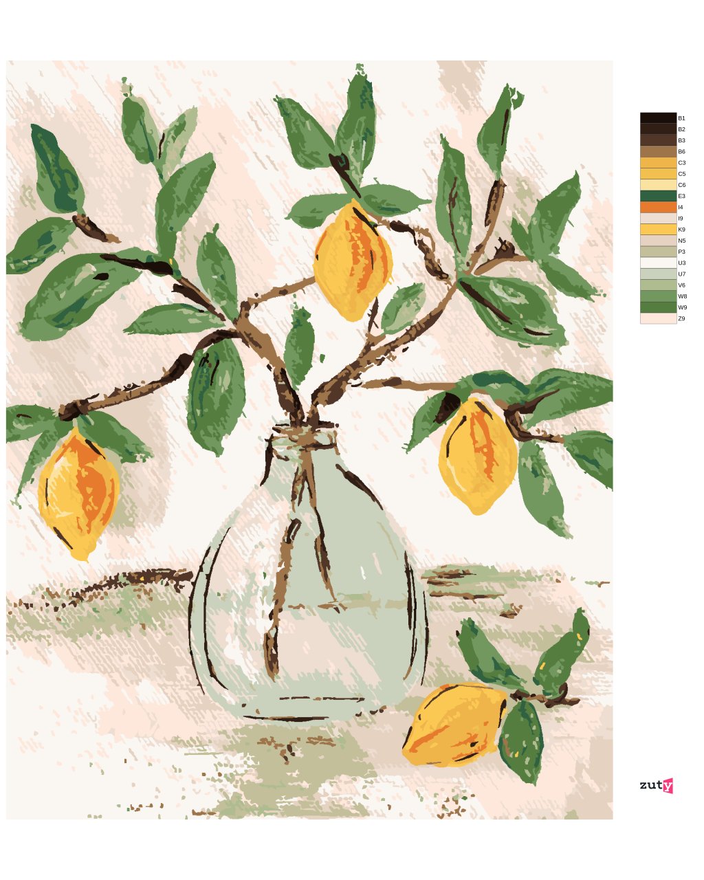 Maľovanie podľa čísel - CITRÓNY VO VÁZE (HALEY BUSH)