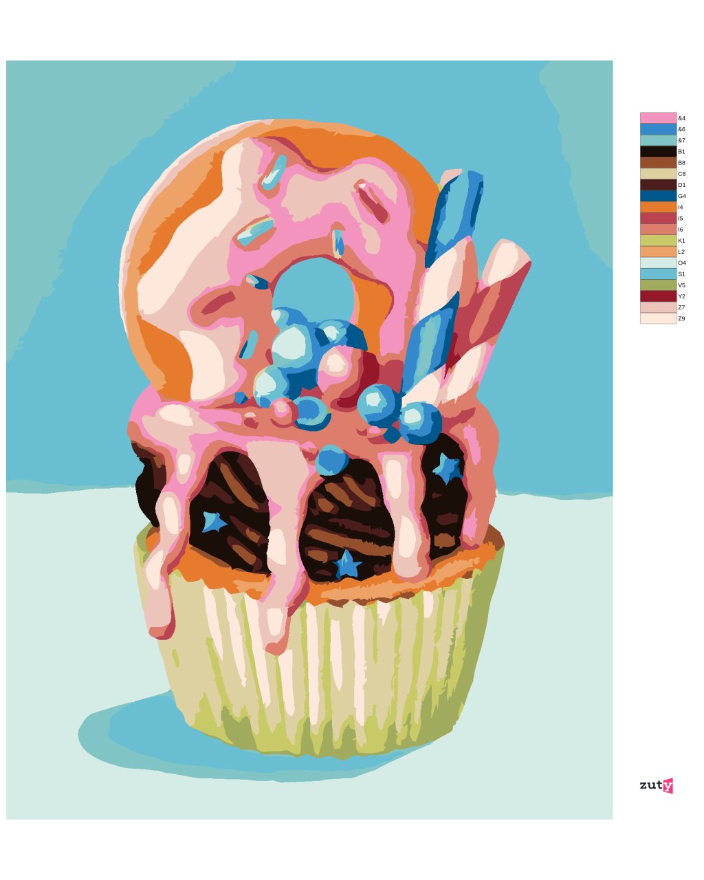 Maľovanie podľa čísel - CUPCAKE S DONUTOM (MYROSLAVA VOLOSCHUK)