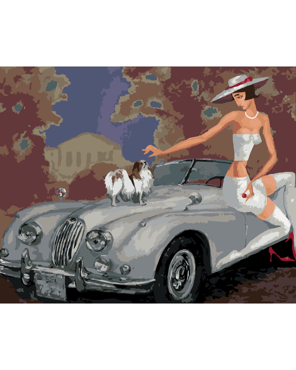 Maľovanie podľa čísel - DÁMA SO PSOM NA KABRIOLETE