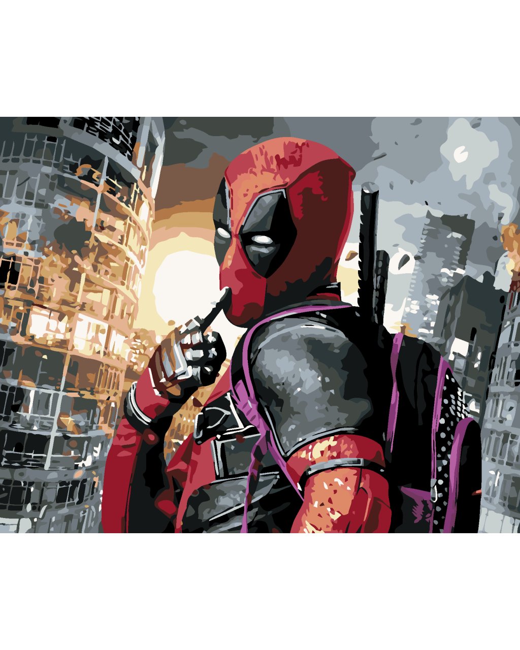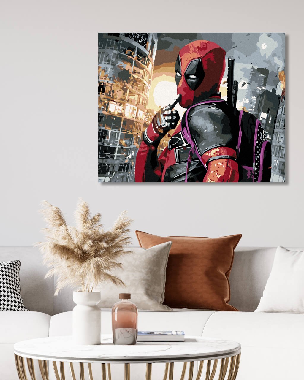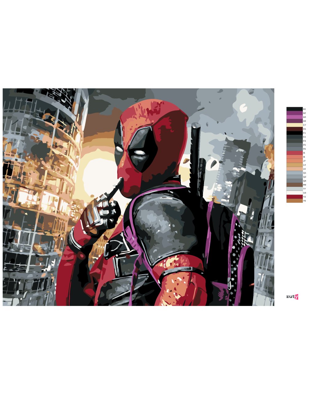 Maľovanie podľa čísel - DEADPOOL S DETSKÝM BATOHOM