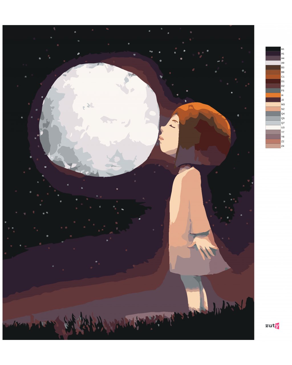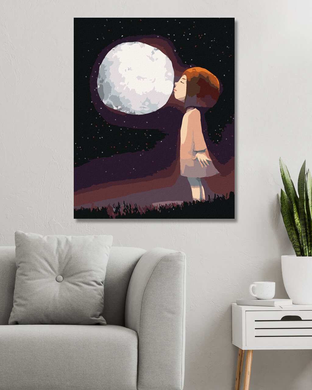 Maľovanie podľa čísel - DIEVČA BOZKÁVAJÚCE MESIAC