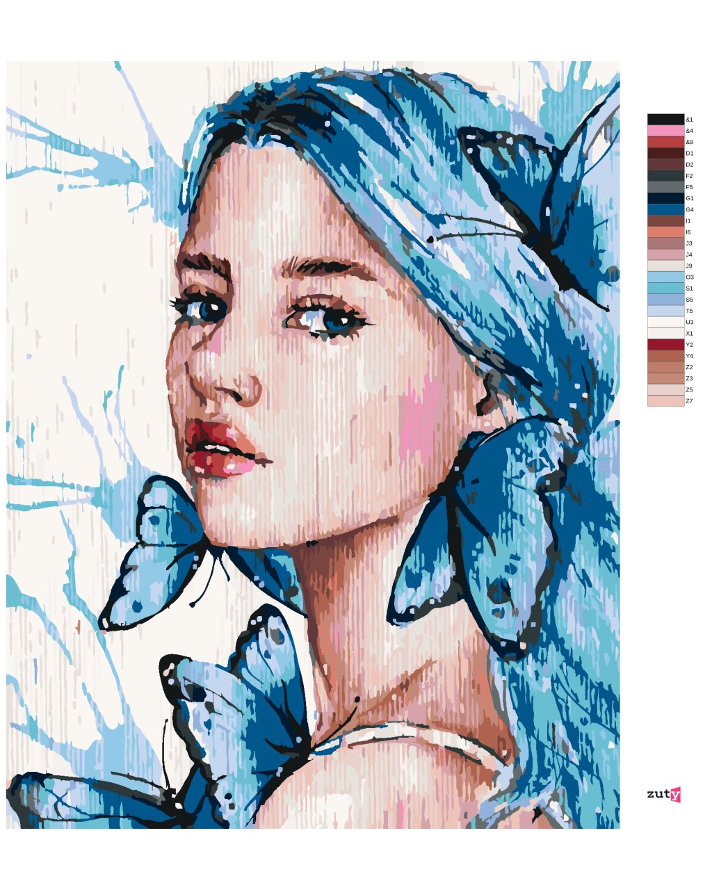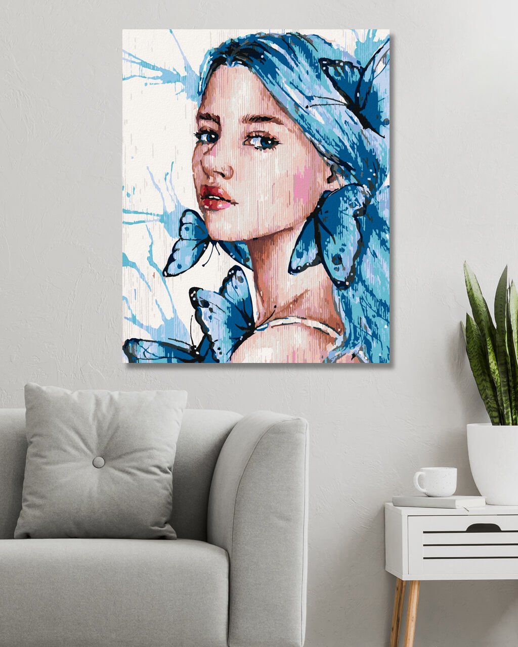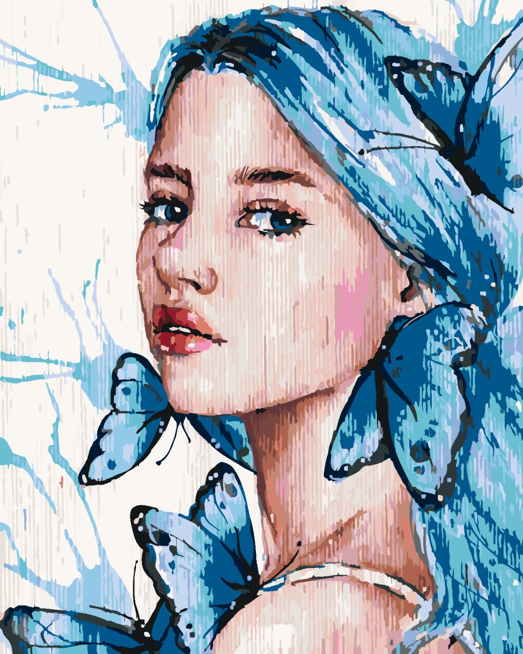 Maľovanie podľa čísel - DIEVČA S MODRÝMI VLASMI A MOTÝĽMI