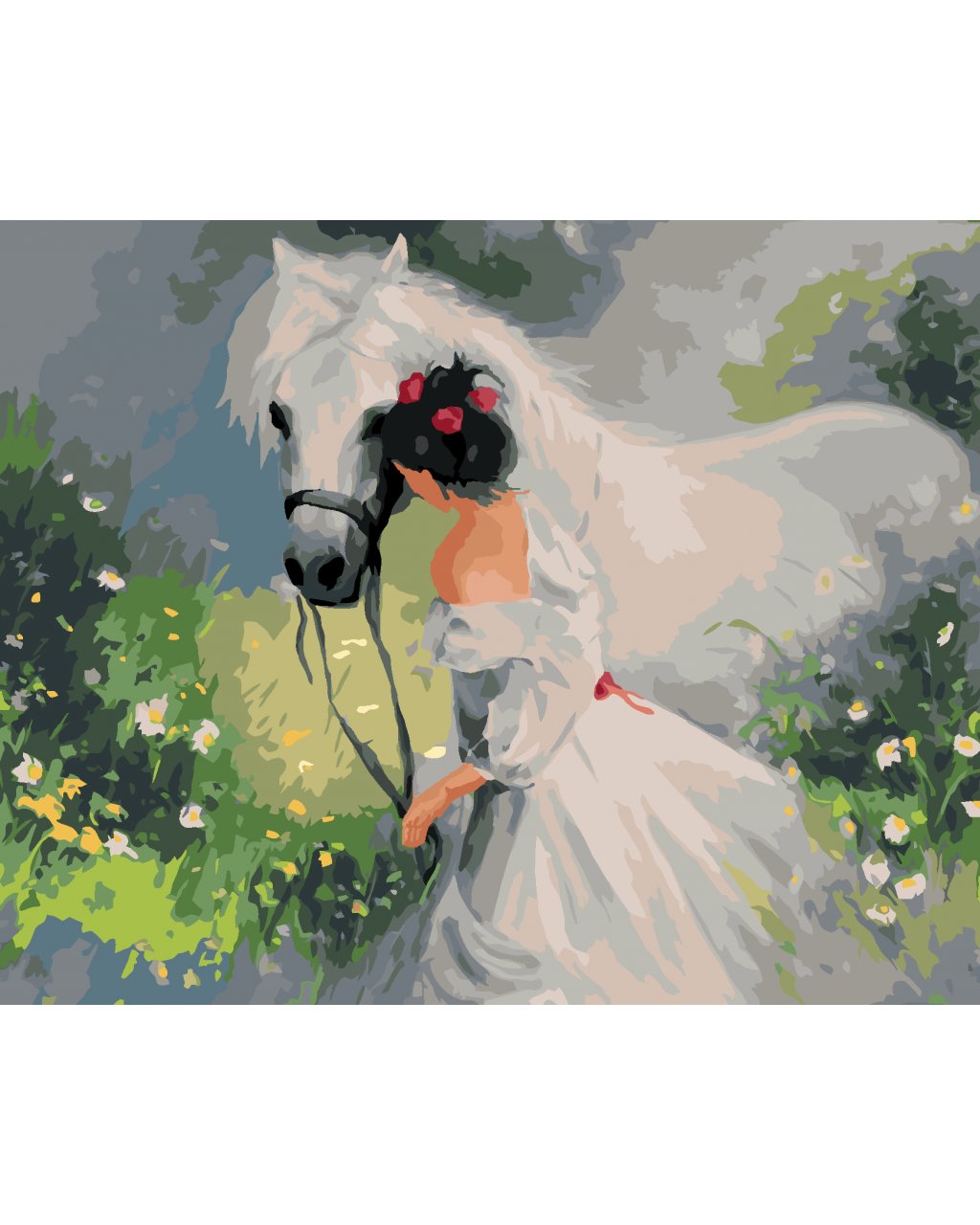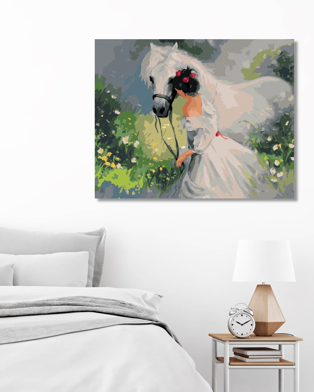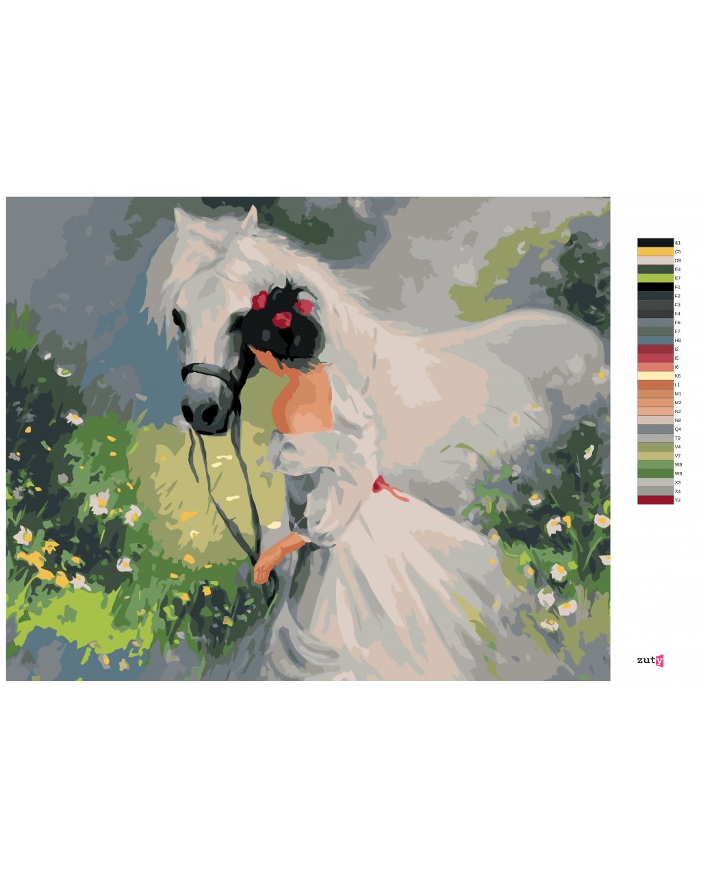 Maľovanie podľa čísel - DIEVČA V BIELÝCH ŠATÁCH A KÔŇ