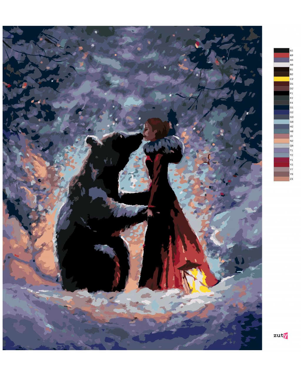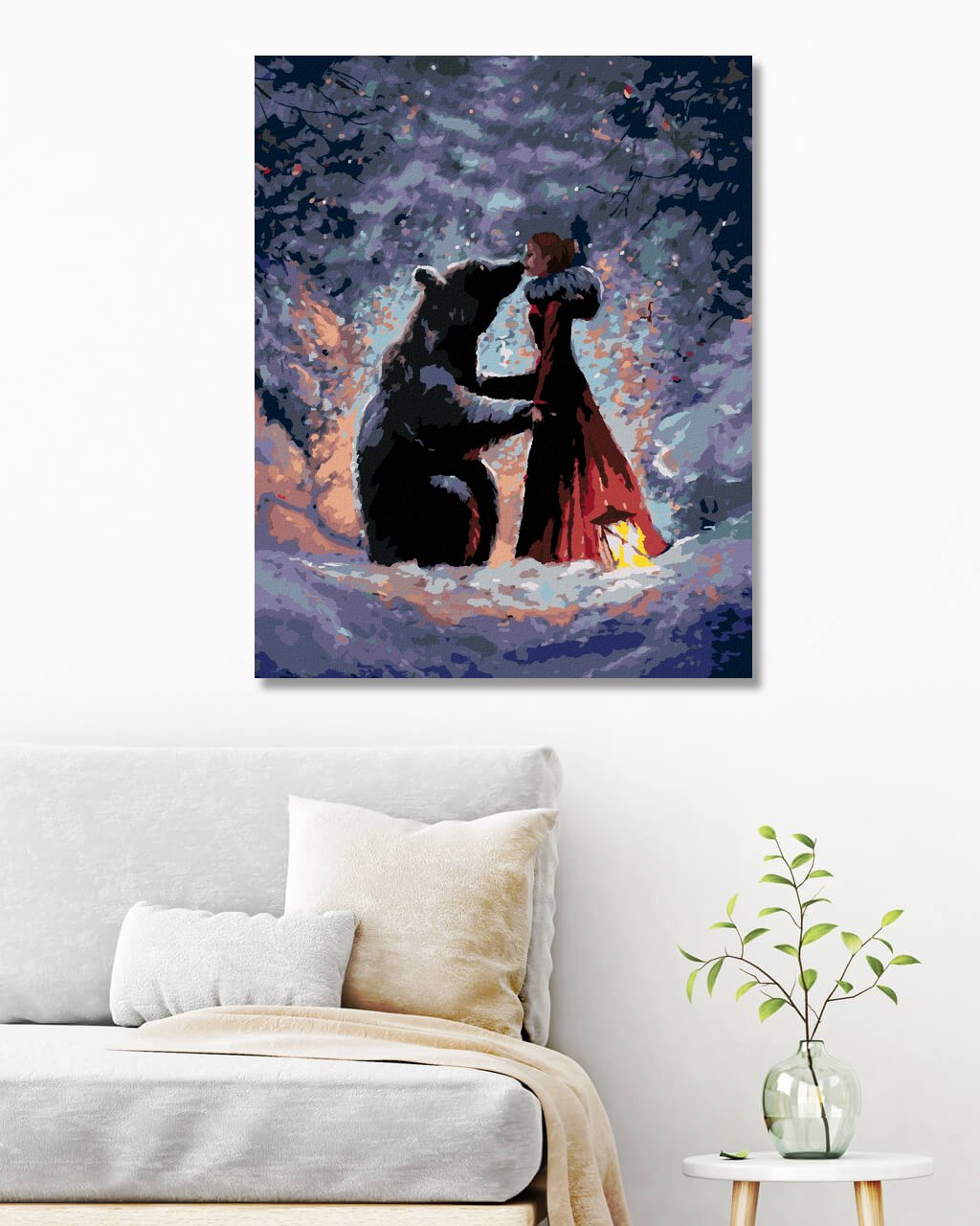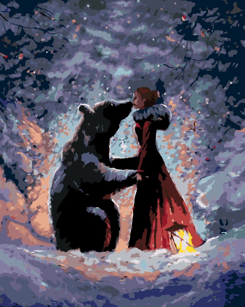 Maľovanie podľa čísel - DIEVČA V ČEREVENÝCH ŠATÁCH A MEDVEĎ