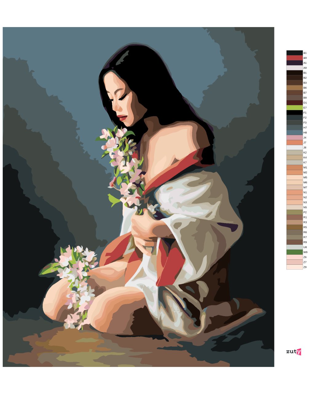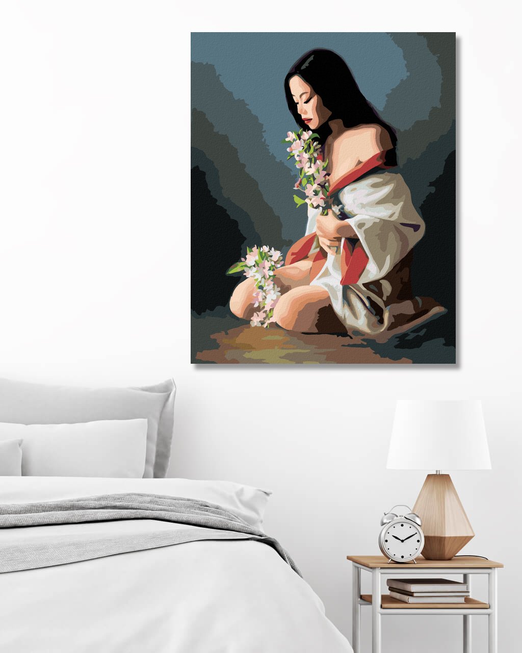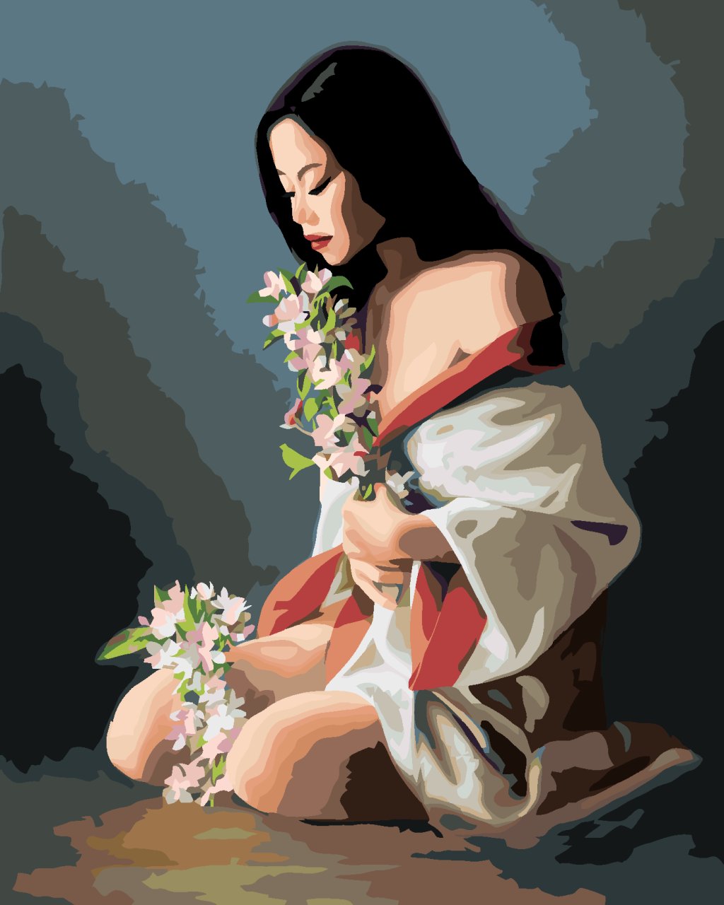 Maľovanie podľa čísel - DIEVČA V ŽUPANE A BIELE KVETY (PIETER WAGEMANS)