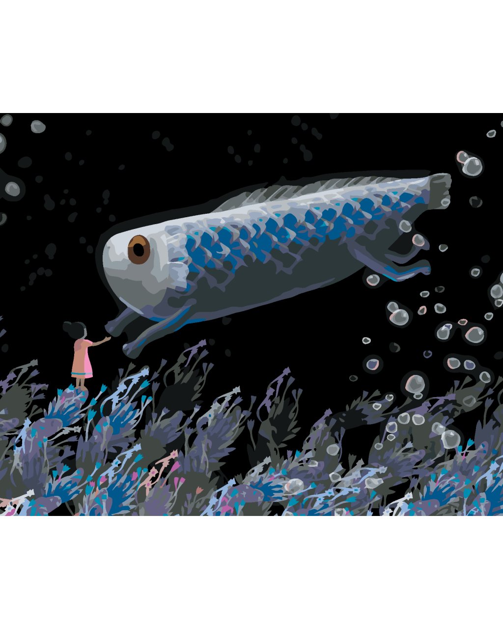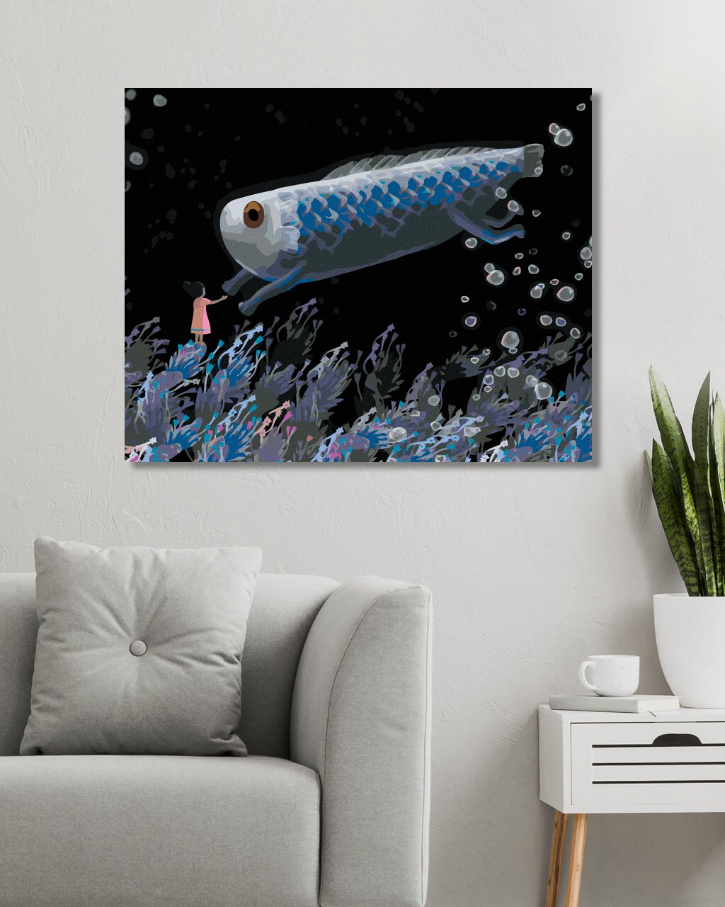 Maľovanie podľa čísel - DIEVČATKO S OBROVSKOU RYBOU