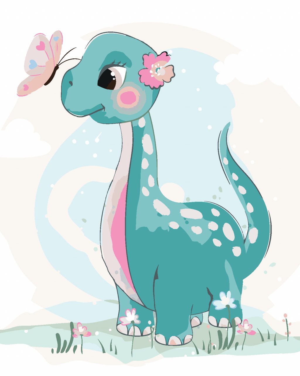 Maľovanie podľa čísel - DINOSAURUS S MOTÝLIKOM