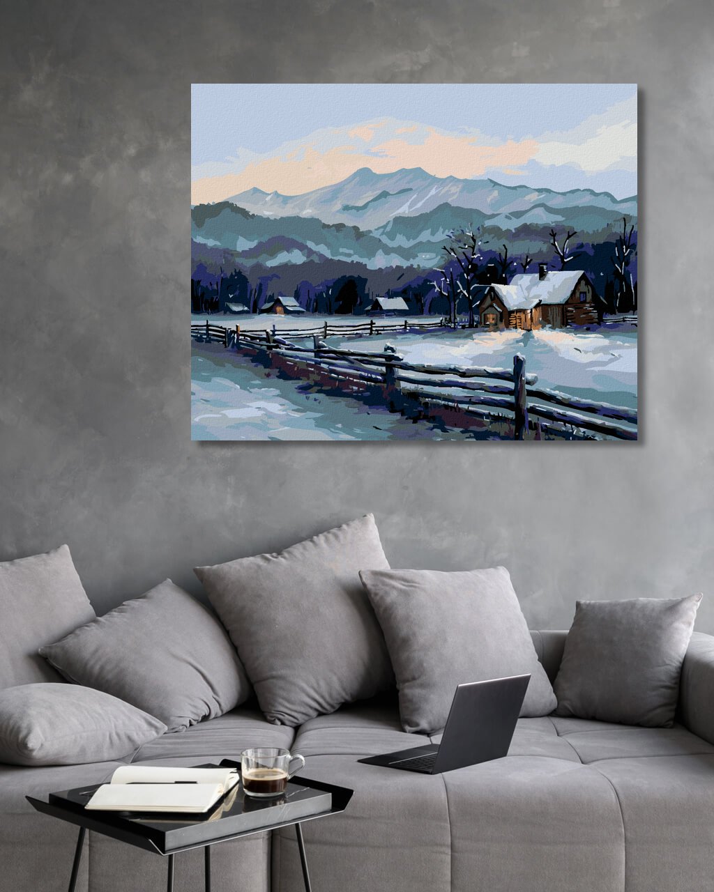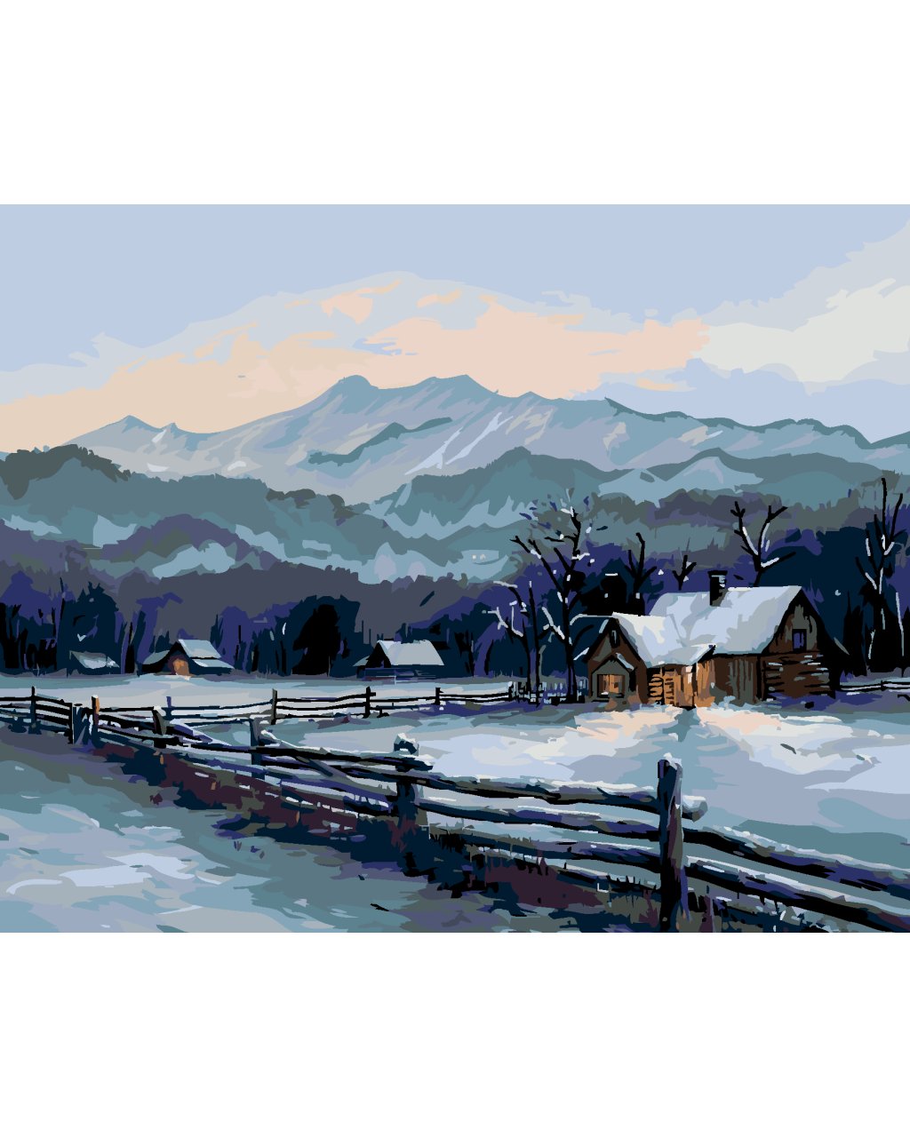 Maľovanie podľa čísel - DOMY V ZIME A HORY