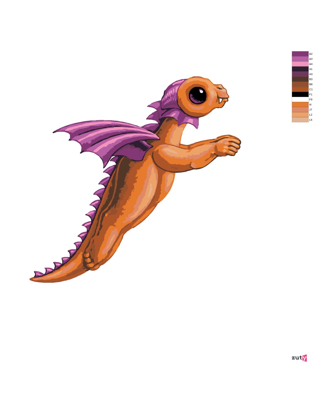 Maľovanie podľa čísel - DRÁČIK V TVARE PÍSMENKA F (SUE ELLEN BROWN)