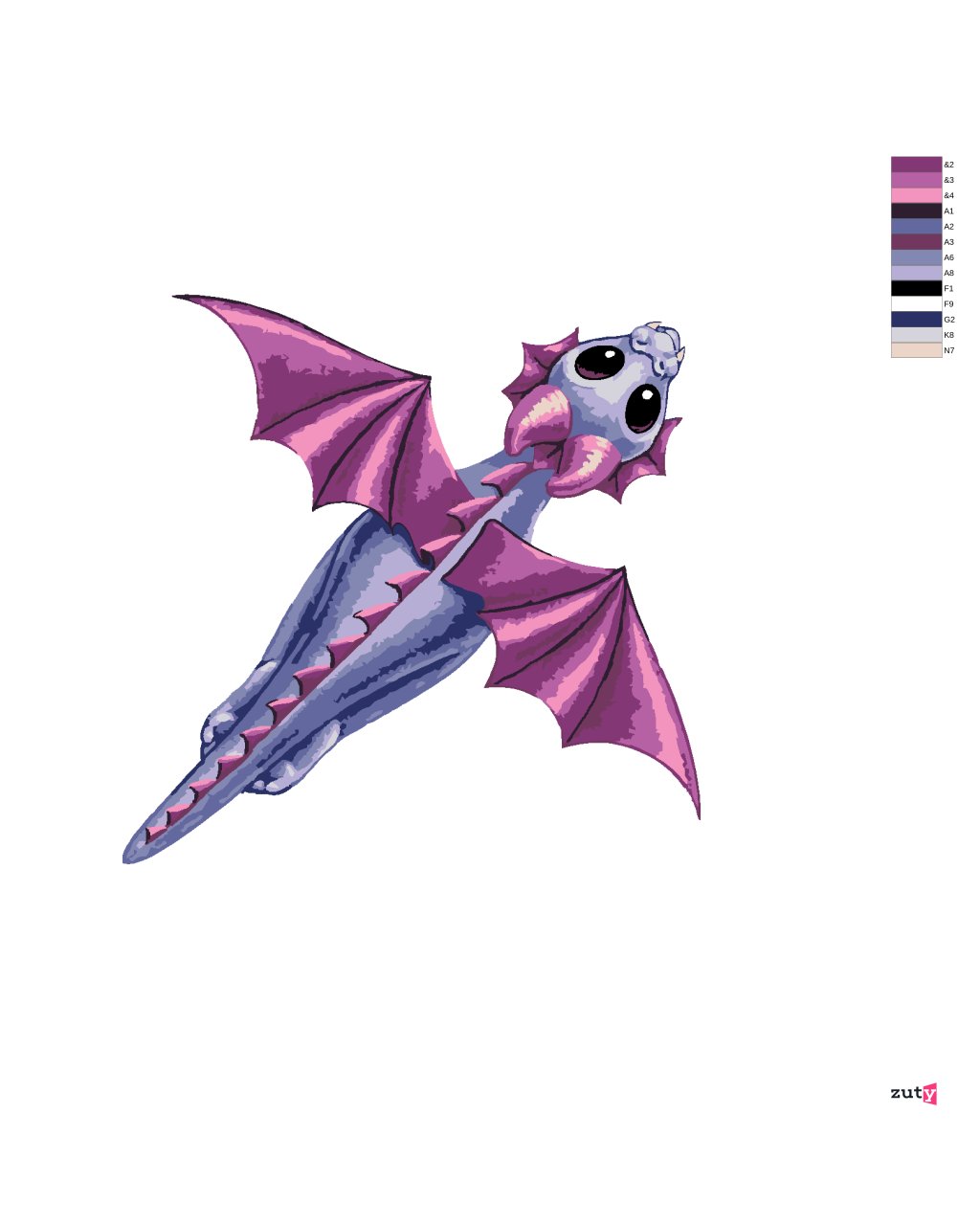 Maľovanie podľa čísel - DRÁČIK V TVARE PÍSMENKA X (SUE ELLEN BROWN)