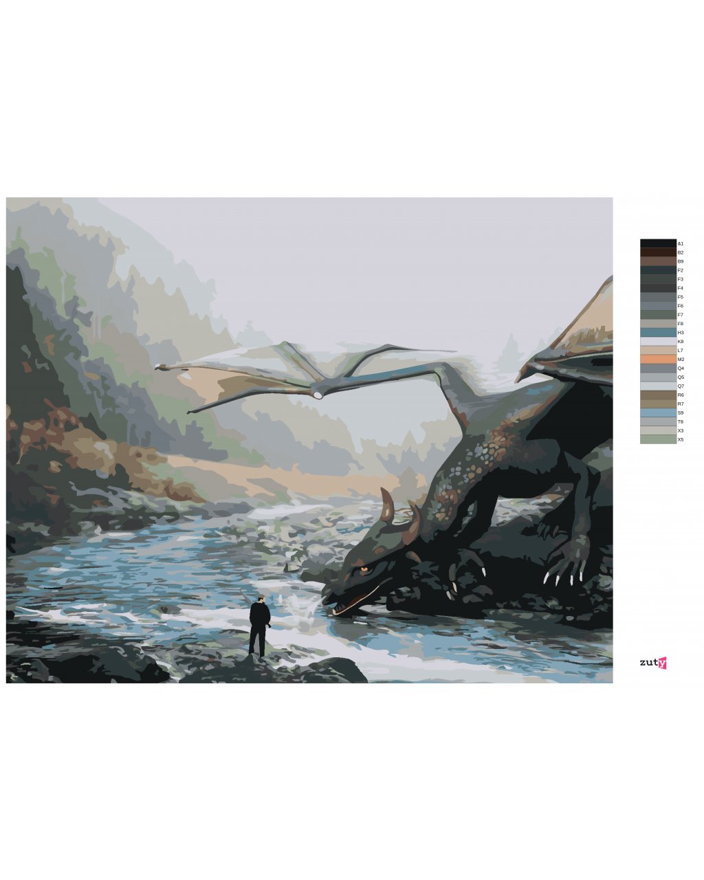 Maľovanie podľa čísel - DRAK PRI RIEKE