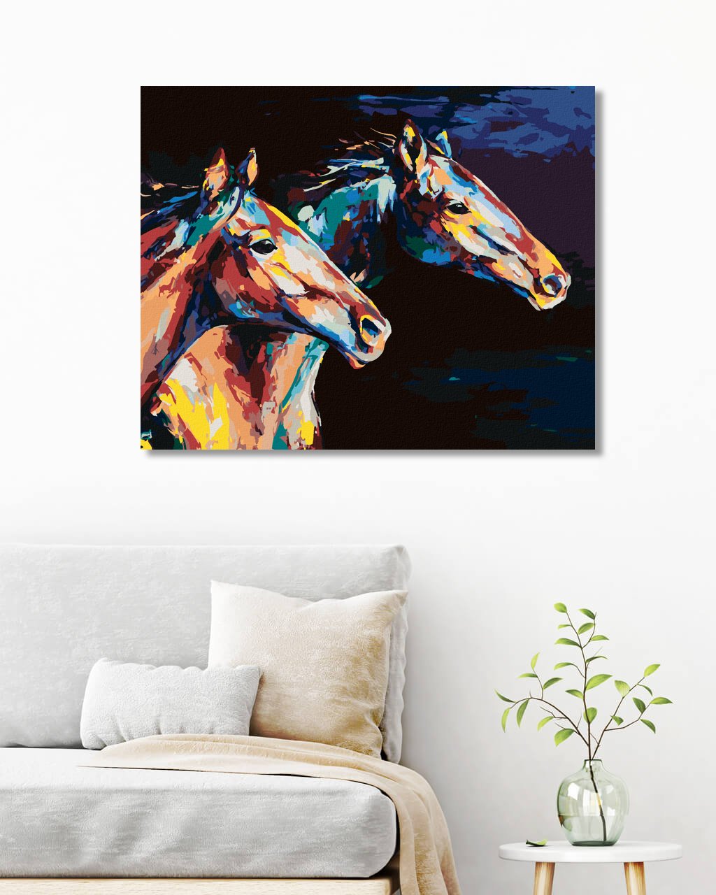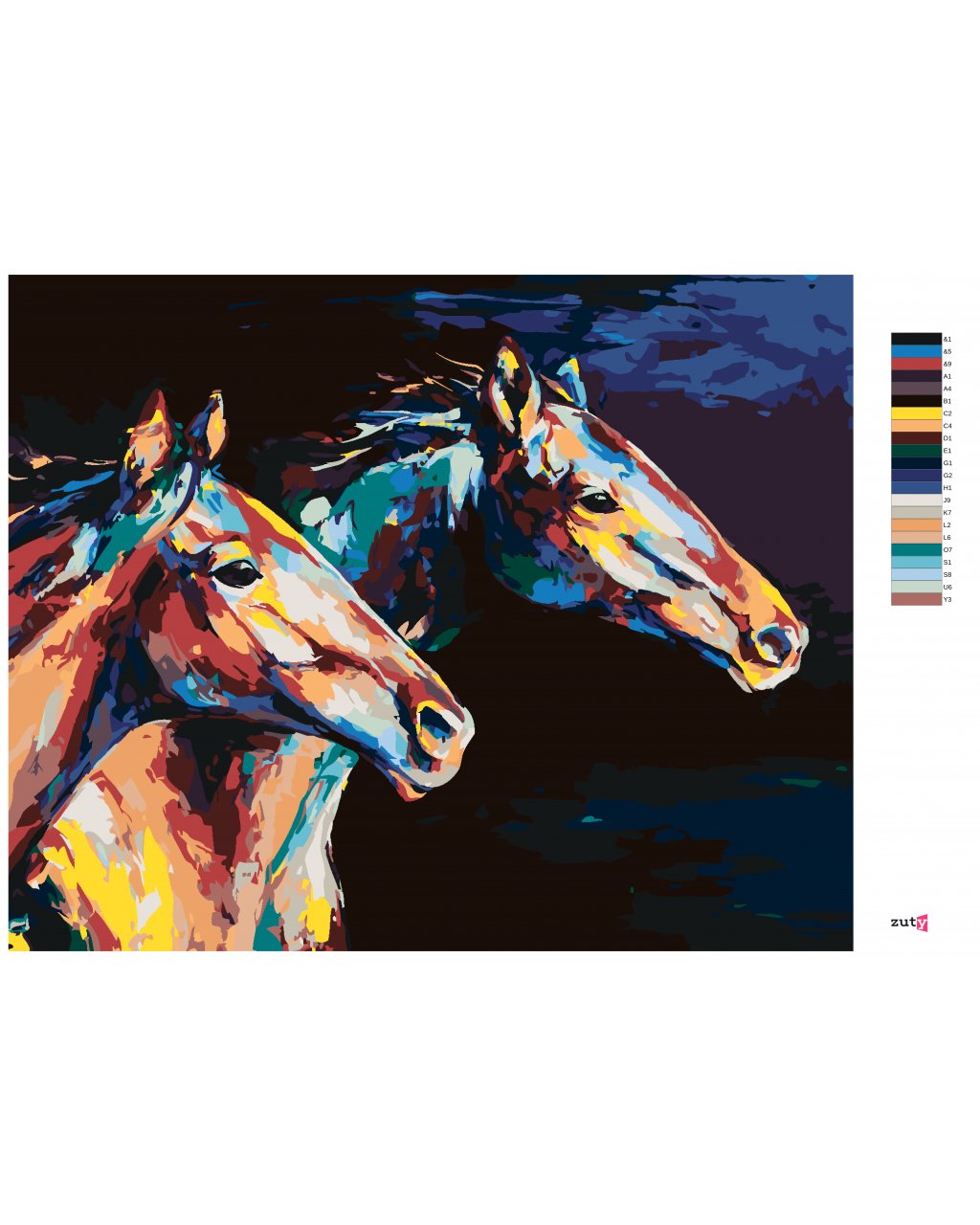 Maľovanie podľa čísel - DVA FAREBNÉ KONE V BEHU