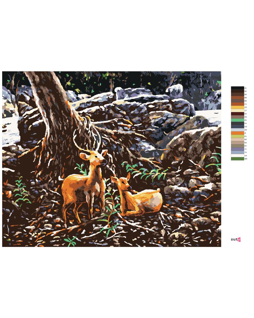 Maľovanie podľa čísel - DVA JELENIA V LESE