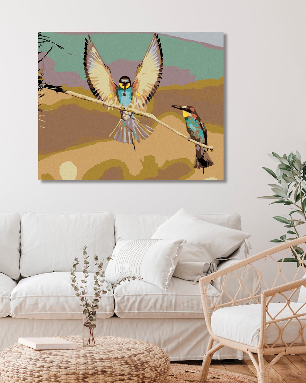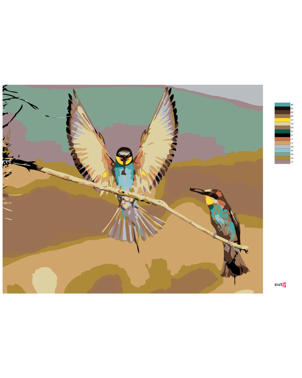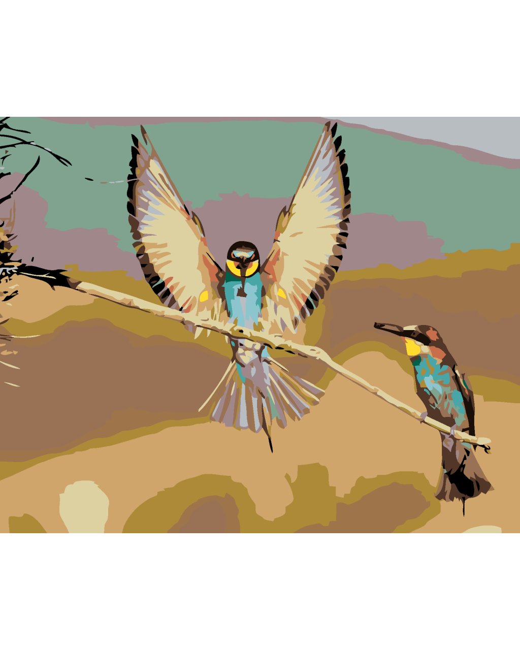 Maľovanie podľa čísel - DVA VTÁČIKY NA SUCHEJ VETVIČKE