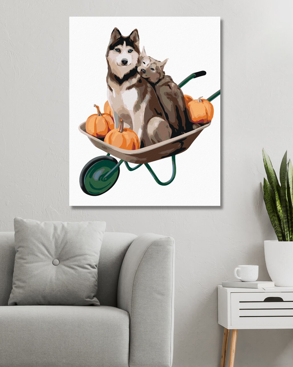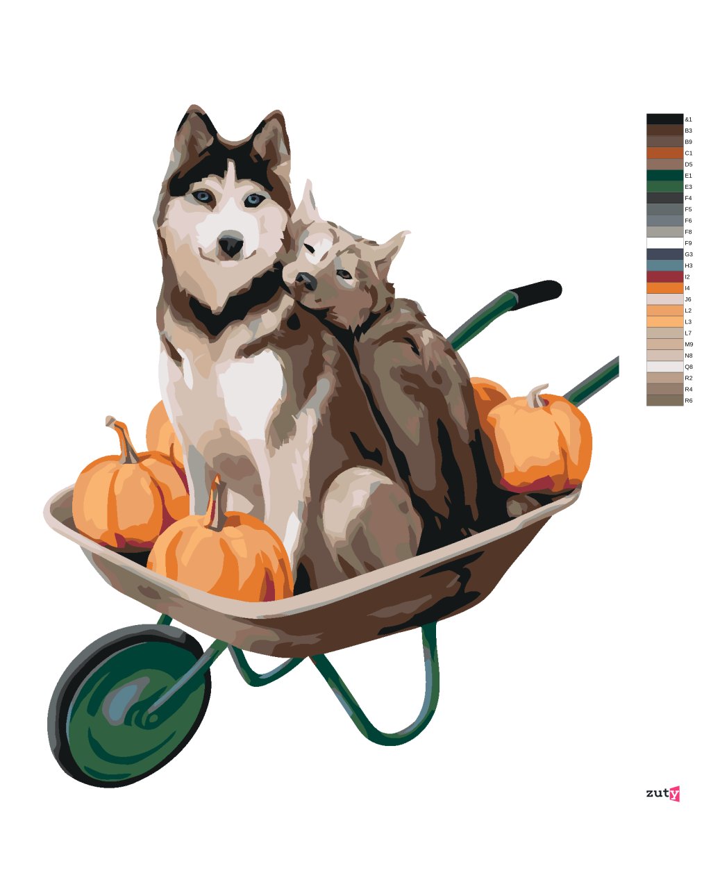 Maľovanie podľa čísel - DVAJA HUSKY NA KOLIESKACH