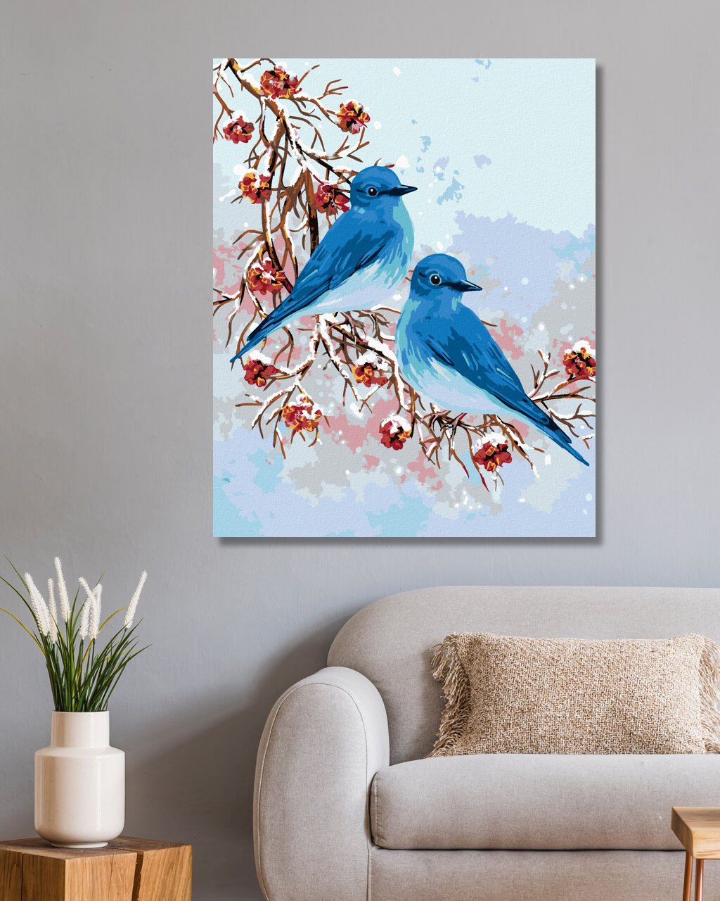 Maľovanie podľa čísel - DVAJA MODRÍ VTÁČIKOVIA