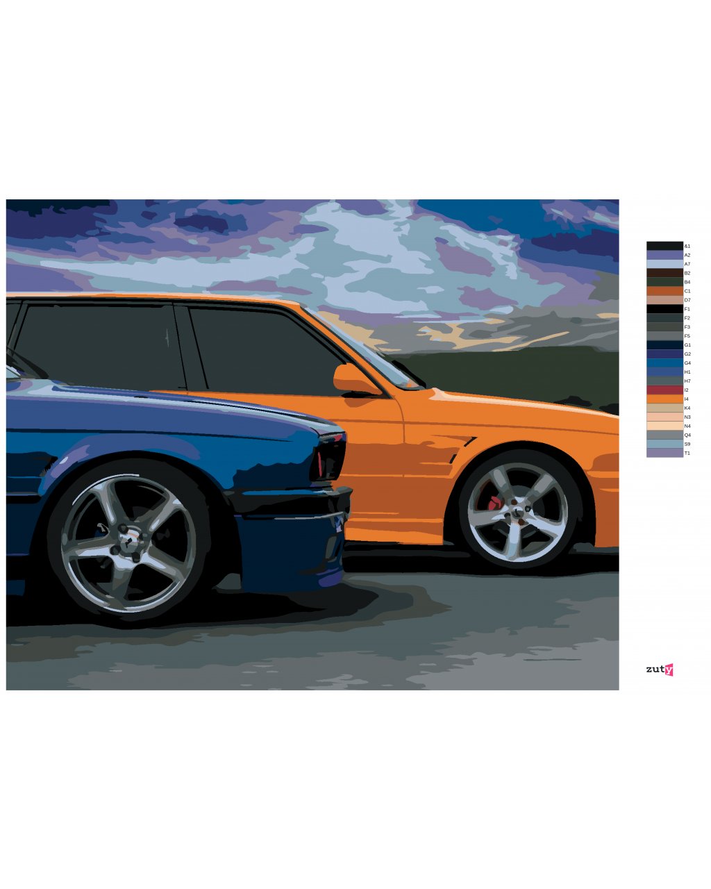 Maľovanie podľa čísel - DVE FAREBNÉ AUTA