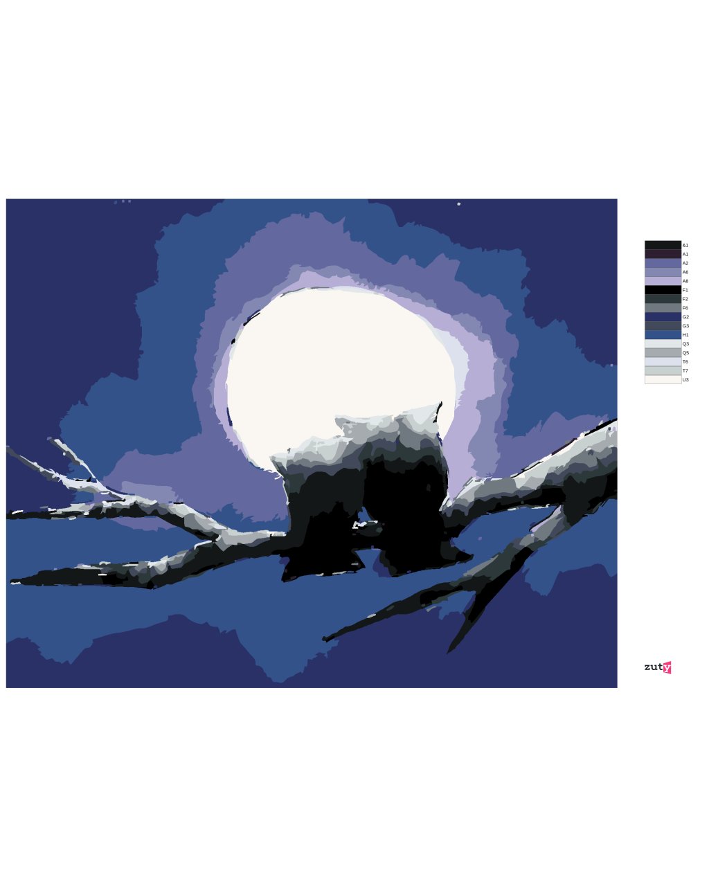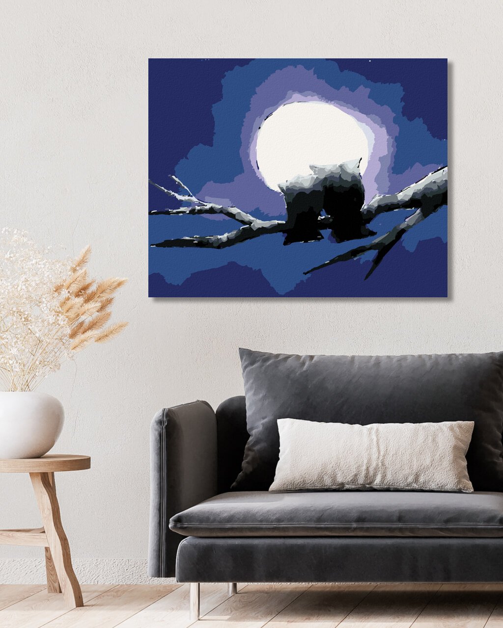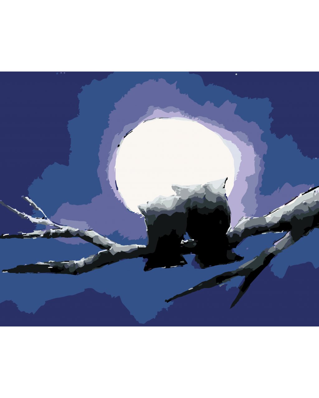 Maľovanie podľa čísel - DVE SOVY A ŽIARIACI MESIAC