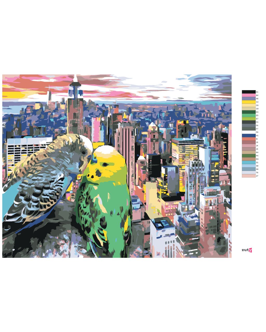 Maľovanie podľa čísel - DVE ZAMILOVANÉ ANDULKY V NEW YORKU