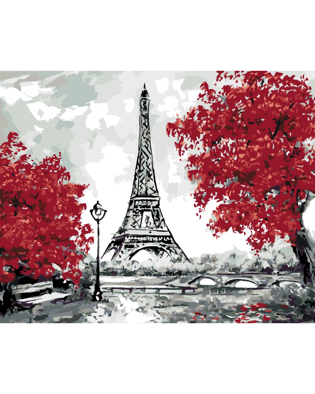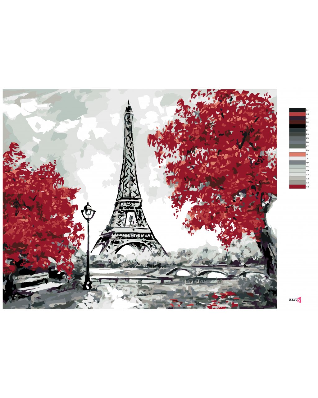Maľovanie podľa čísel - EIFFELOVA VEŽA A ČERVENÉ STROMY