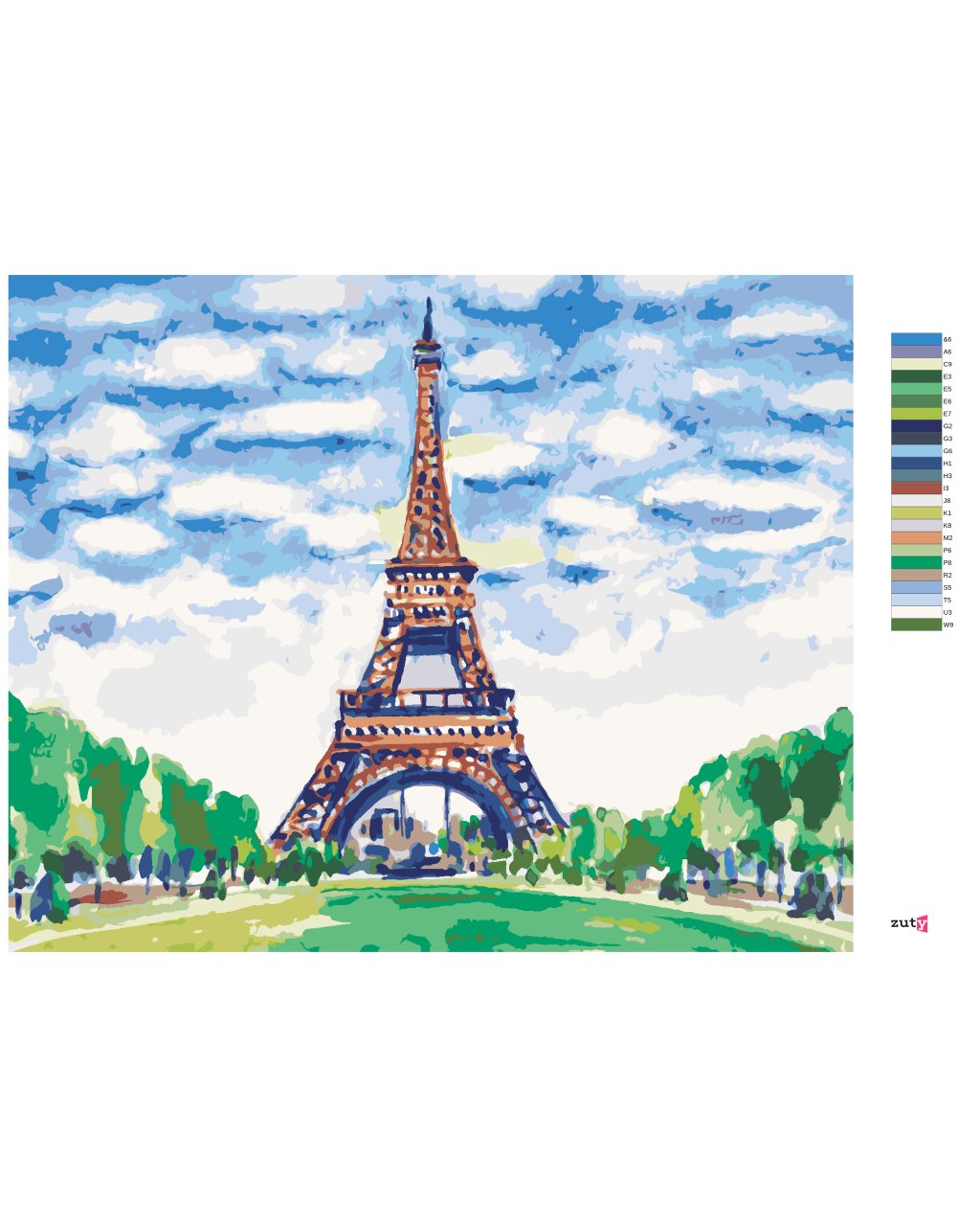 Maľovanie podľa čísel - EIFFELOVA VEŽA A MODRÉ NEBO