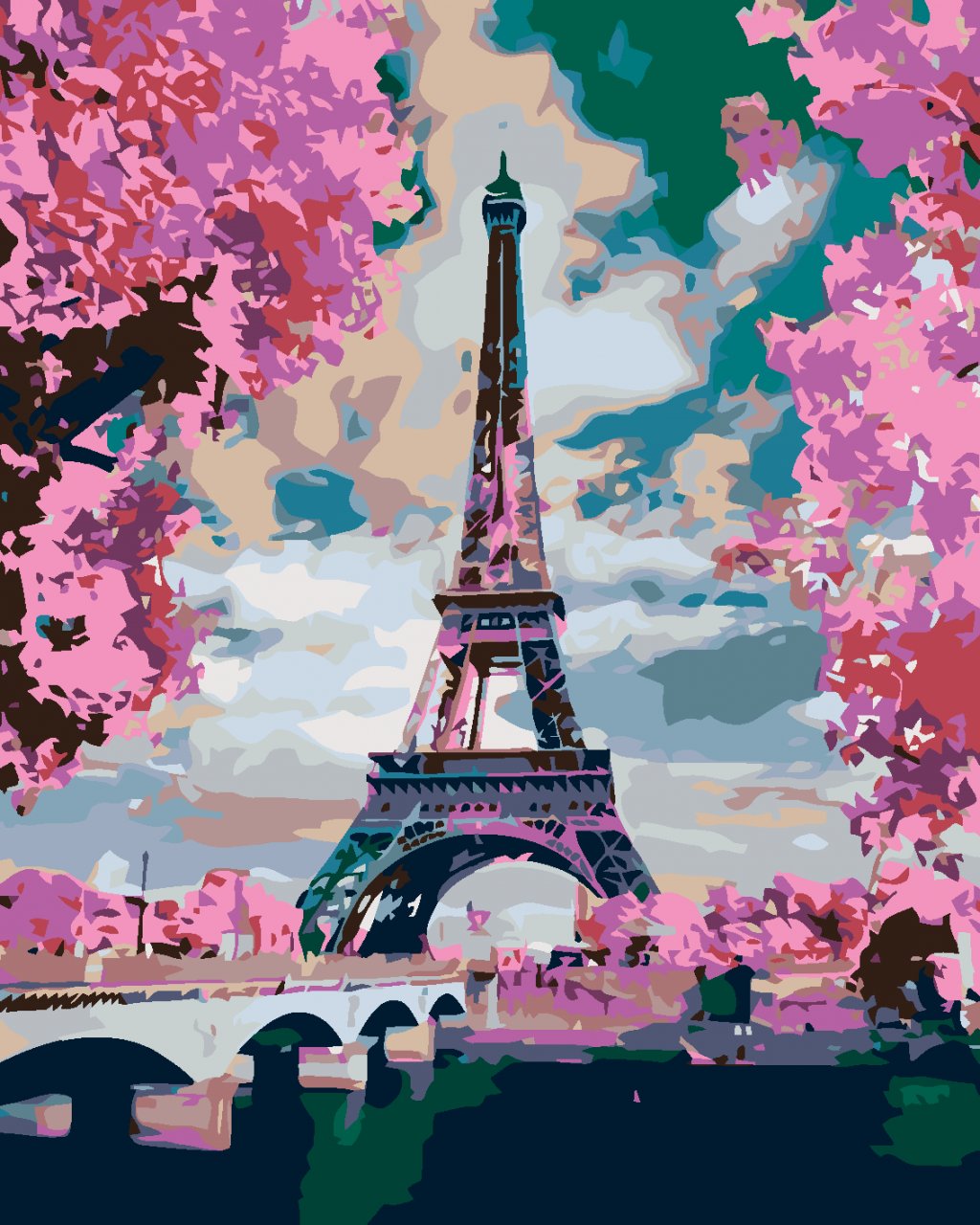 Maľovanie podľa čísel - EIFFELOVA VEŽA A RUŽOVÉ STROMY