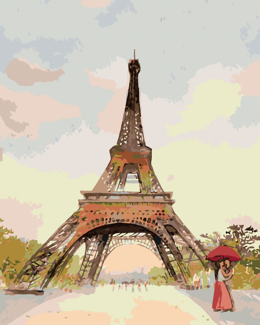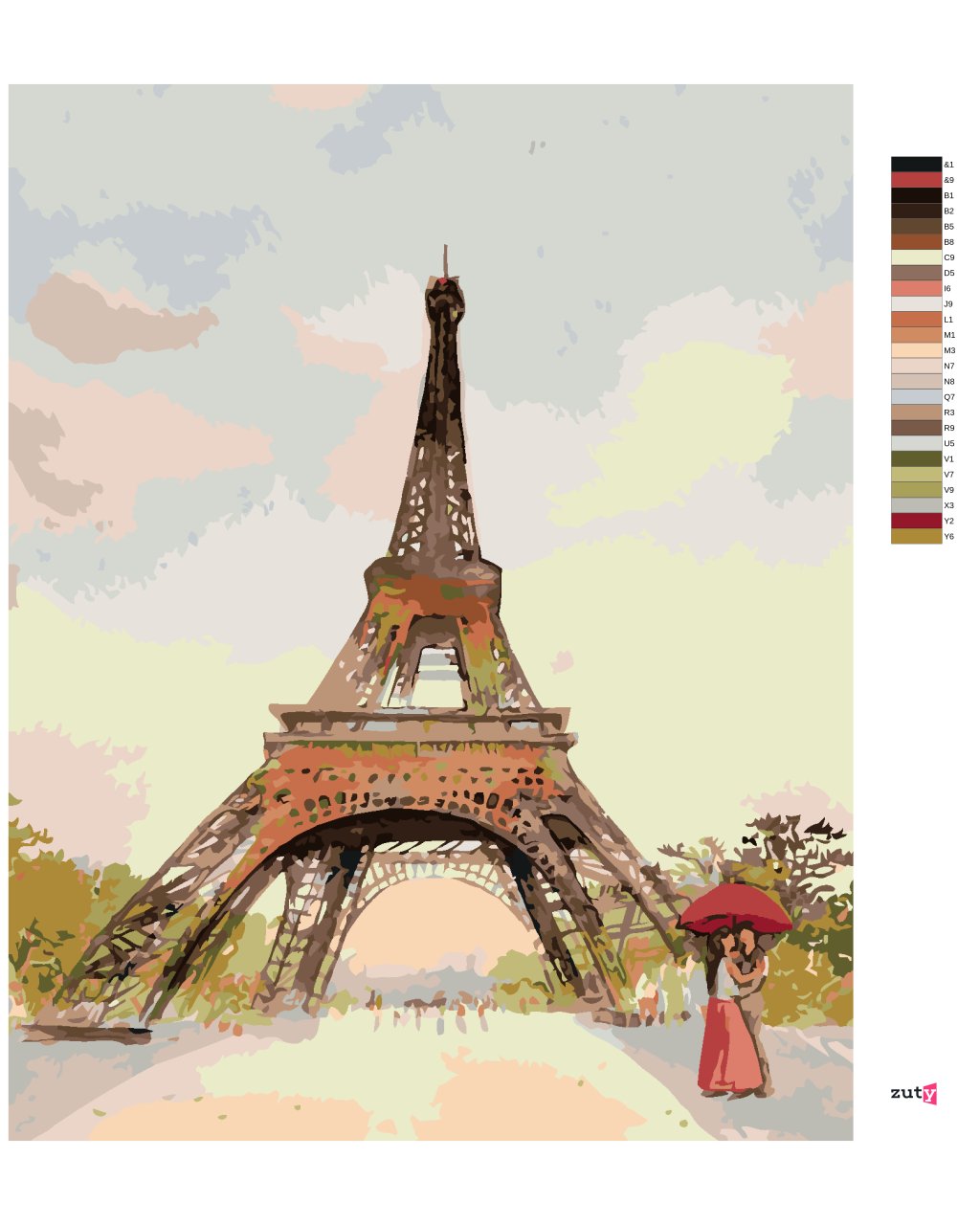 Maľovanie podľa čísel - EIFFELOVA VEŽA A ŽENA S ČERVENÝM DÁŽDNIKOM