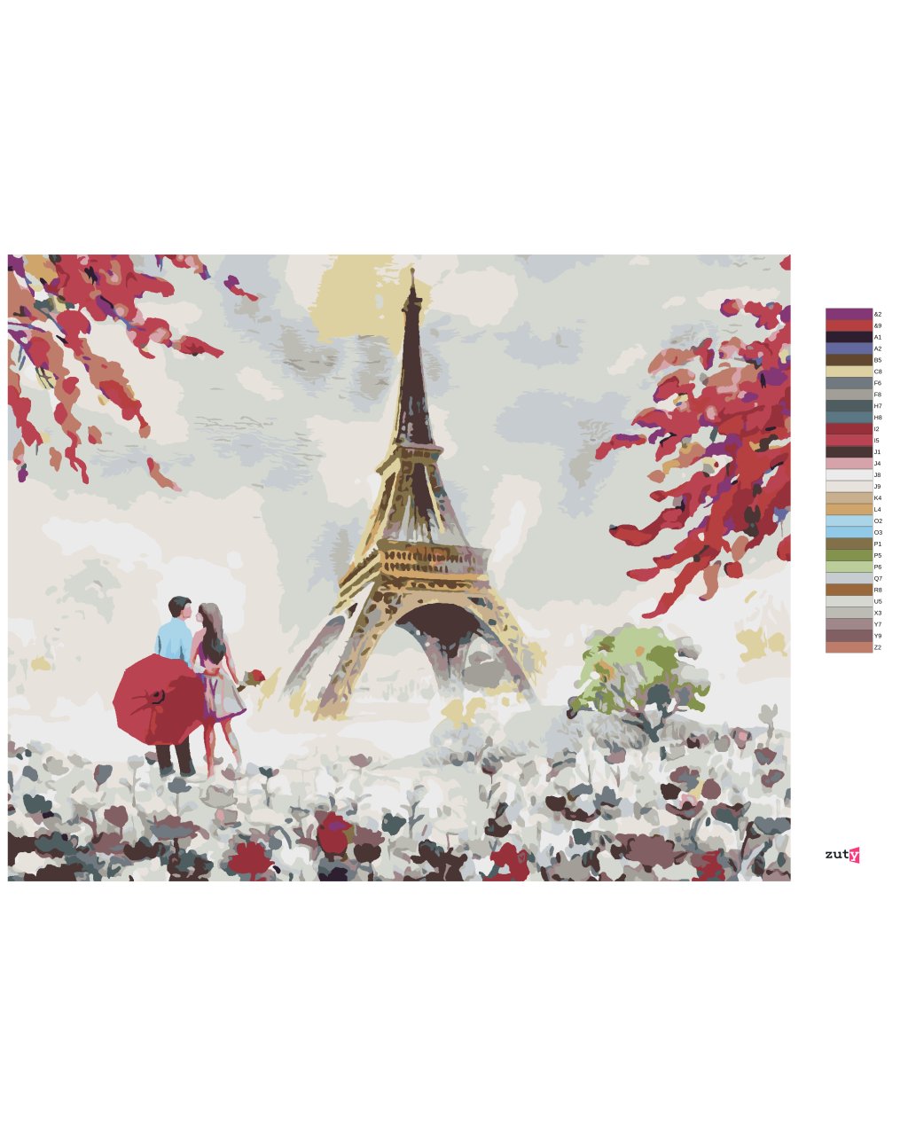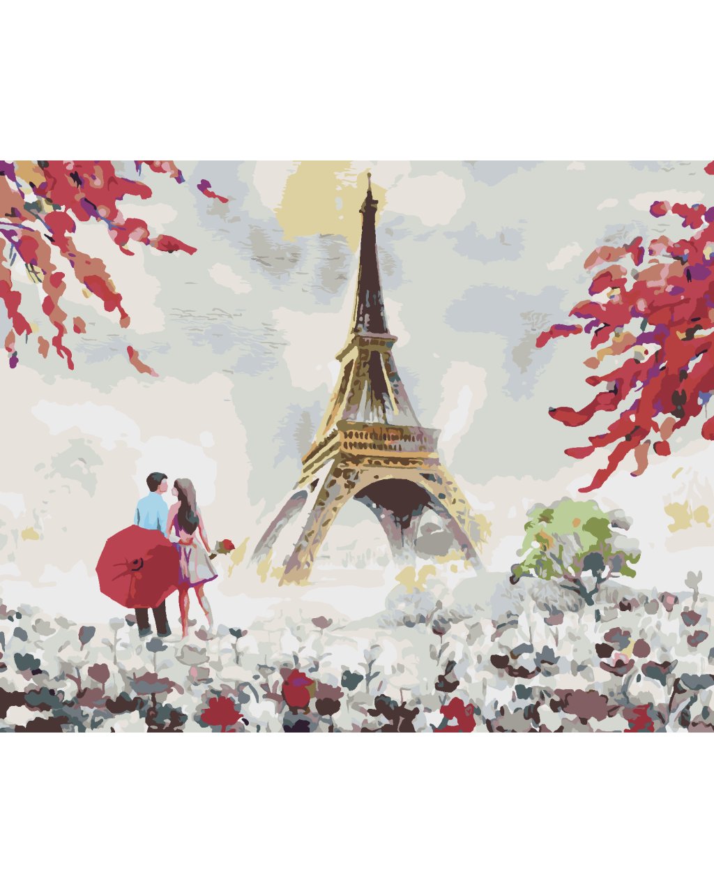 Maľovanie podľa čísel - EIFFELOVA VEŽA A ŽENA S KVETMI