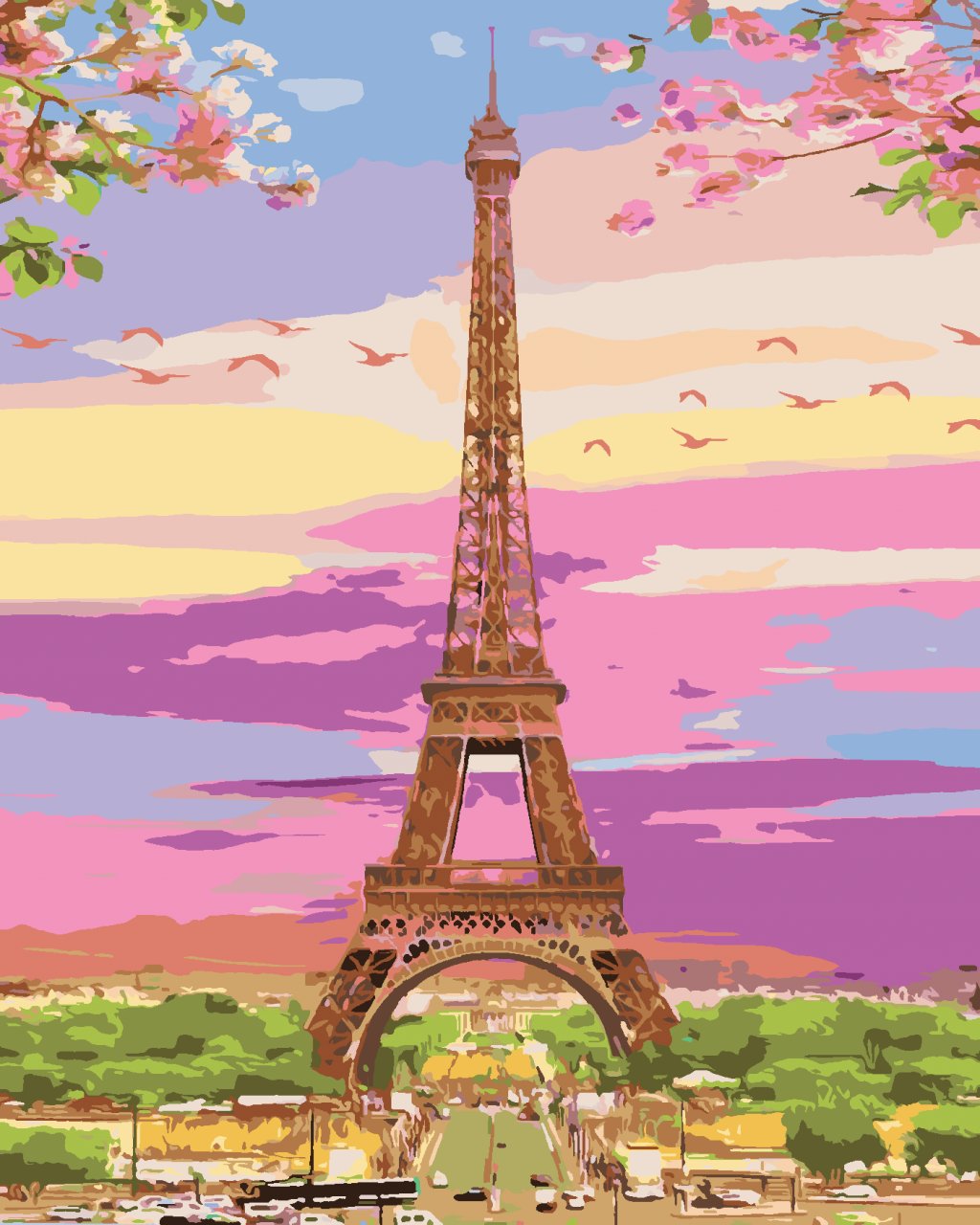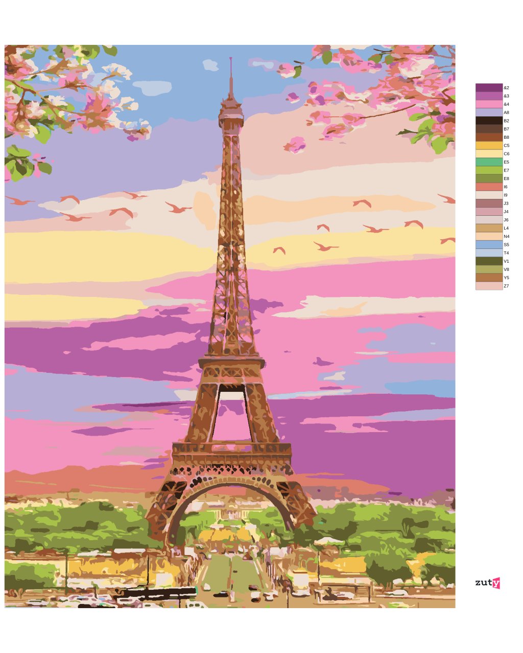 Maľovanie podľa čísel - EIFFELOVA VEŽA V JARNÝCH FARBÁCH