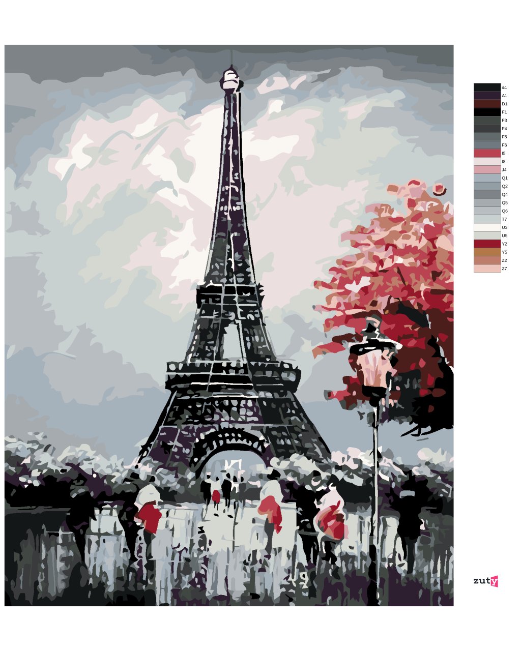 Maľovanie podľa čísel - EIFFELOVKA S ČERVENÝM STROMOM