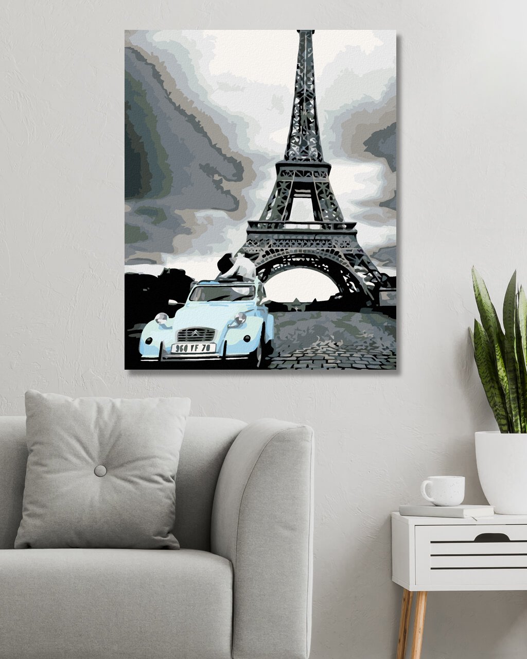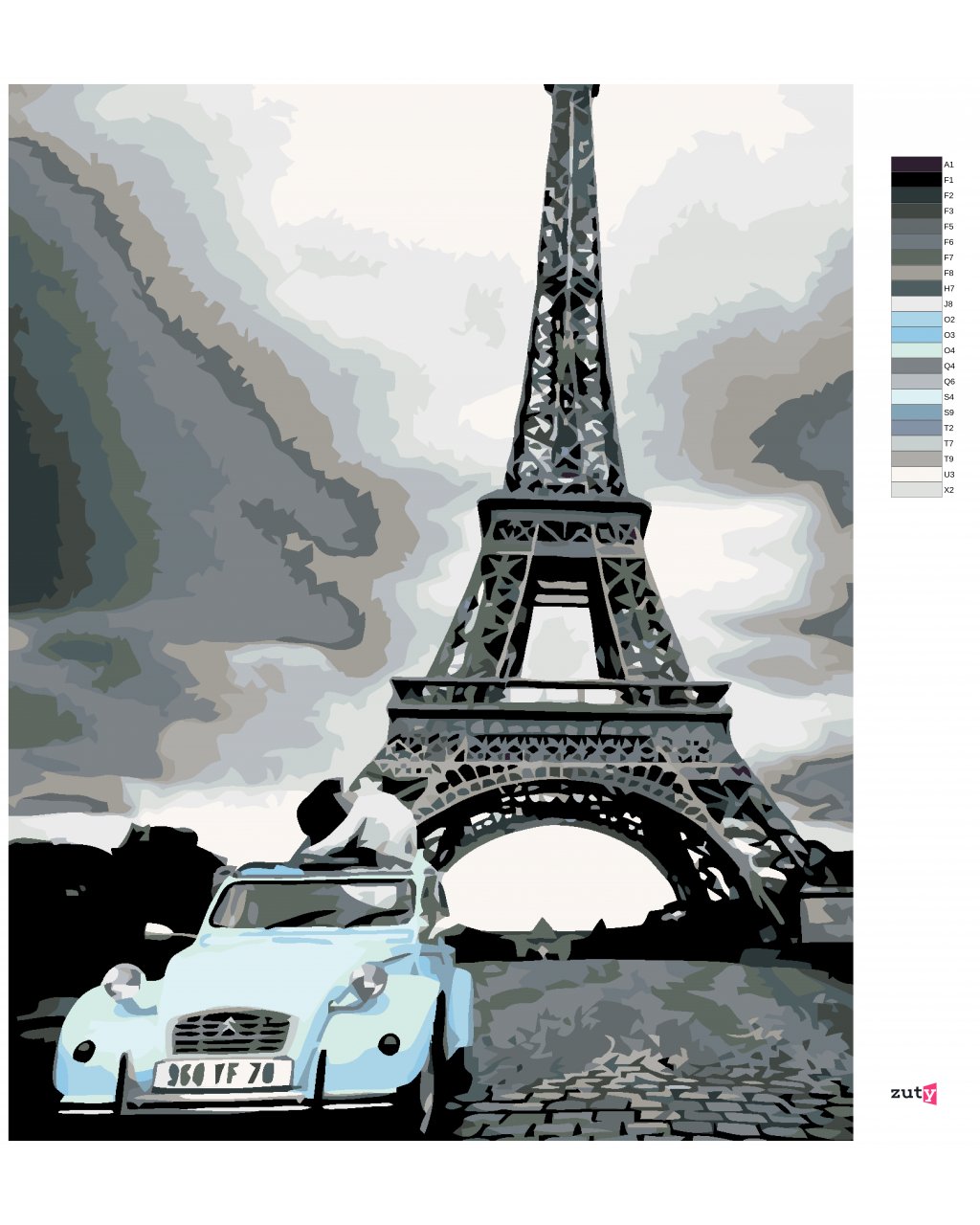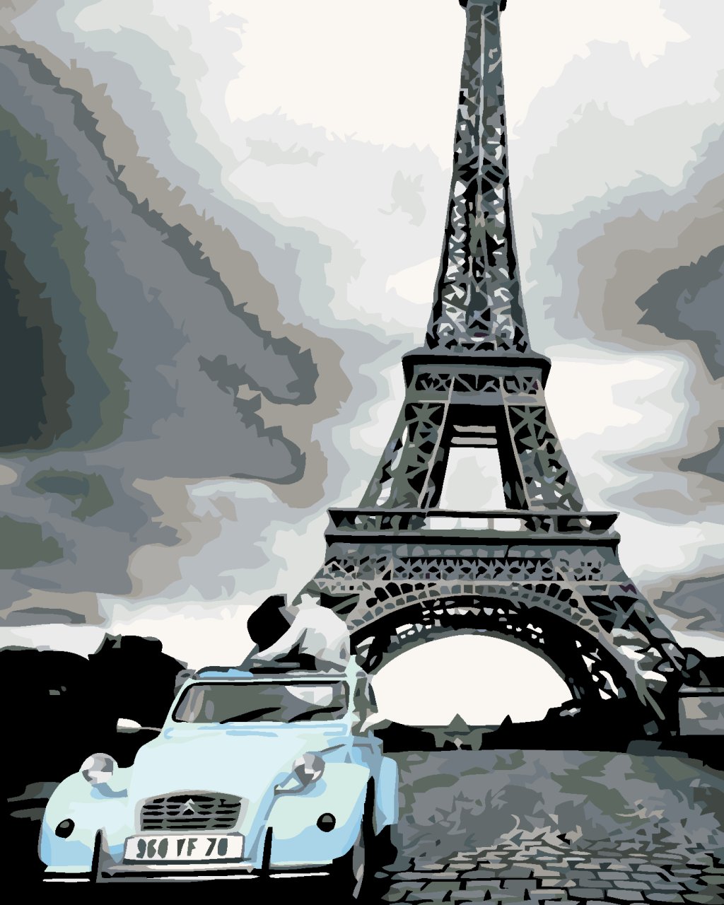 Maľovanie podľa čísel - EIFFELOVKA S MODRÝM AUTOM