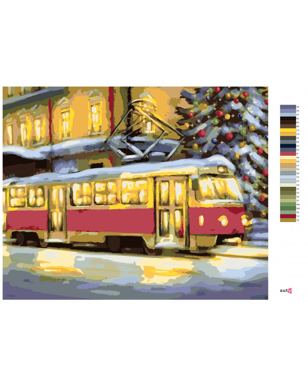 Maľovanie podľa čísel - ELEKTRIČKA S VIANOČNÝM STROMOM