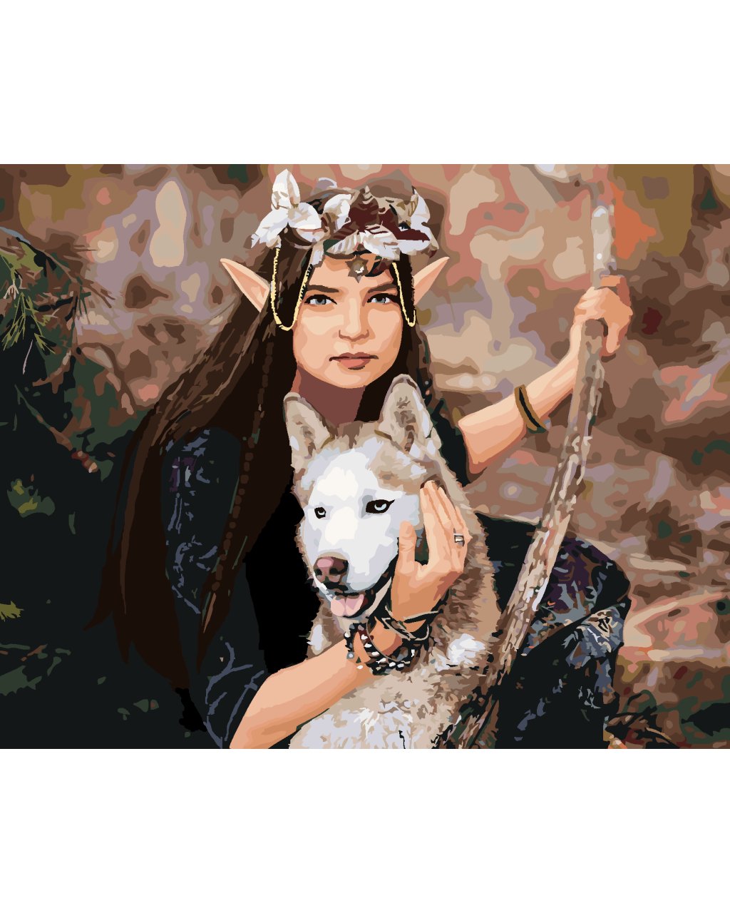 Maľovanie podľa čísel - ELFSKÁ PRINCEZNÁ A VLK