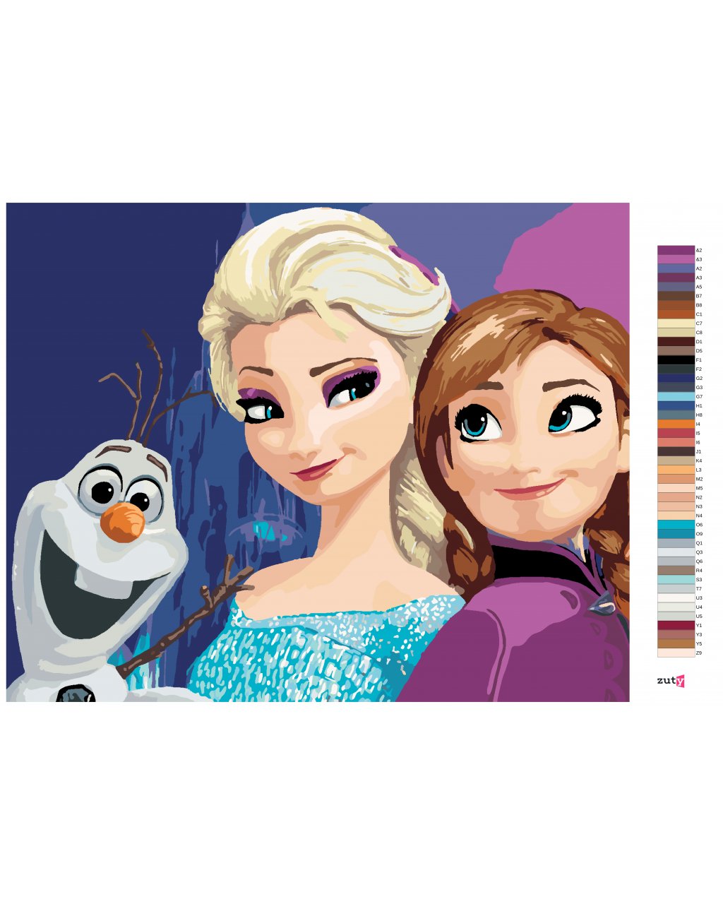 Maľovanie podľa čísel - ELZA, ANNA A OLAF (ĽADOVÉ KRÁĽOVSTVO)