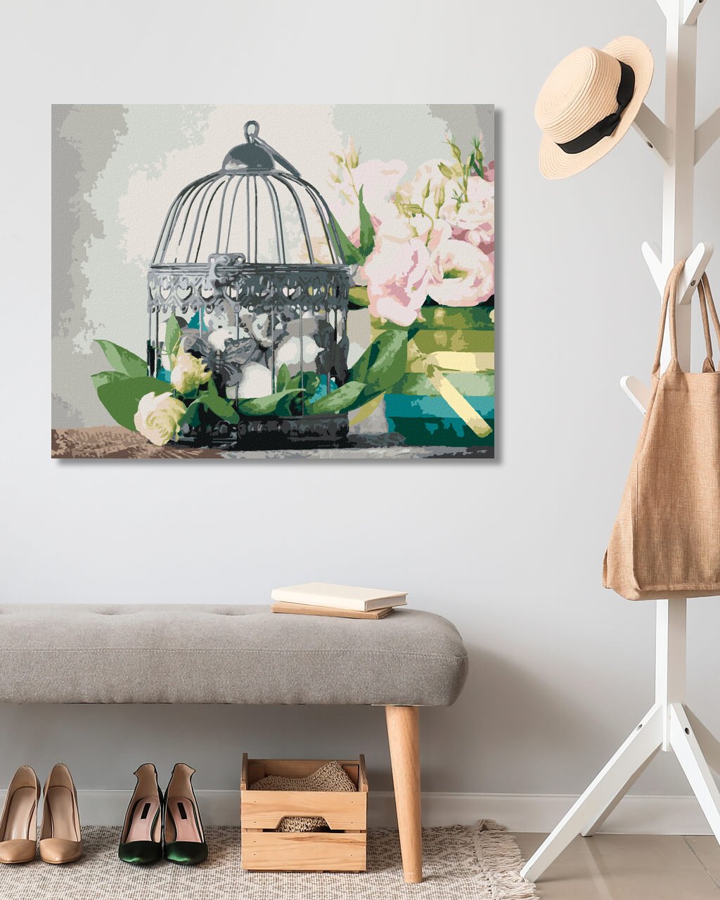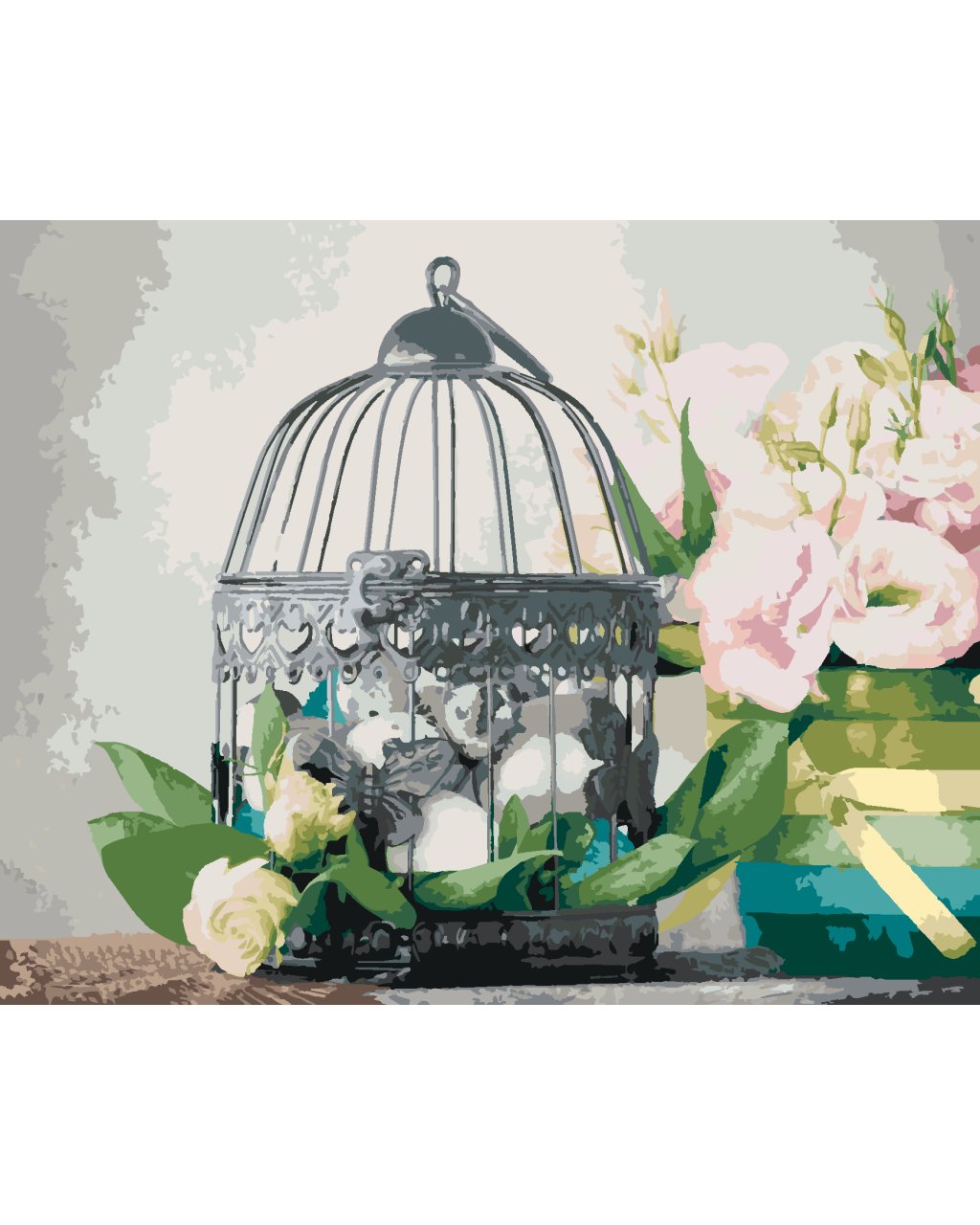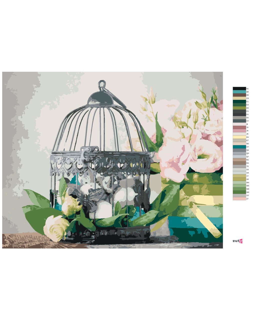 Maľovanie podľa čísel - EUSTOMY A OZDOBNÁ VTÁČIA KLIETKA
