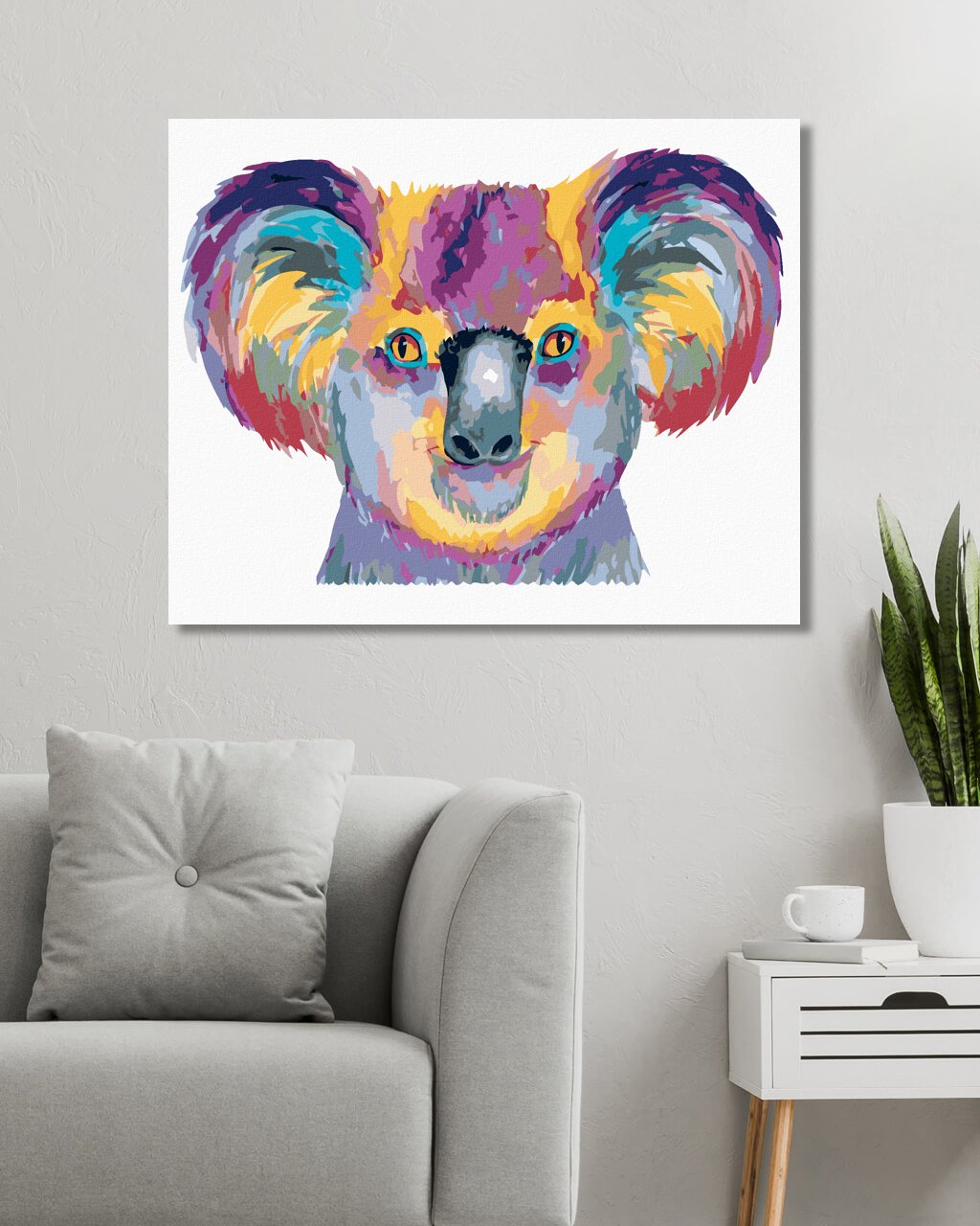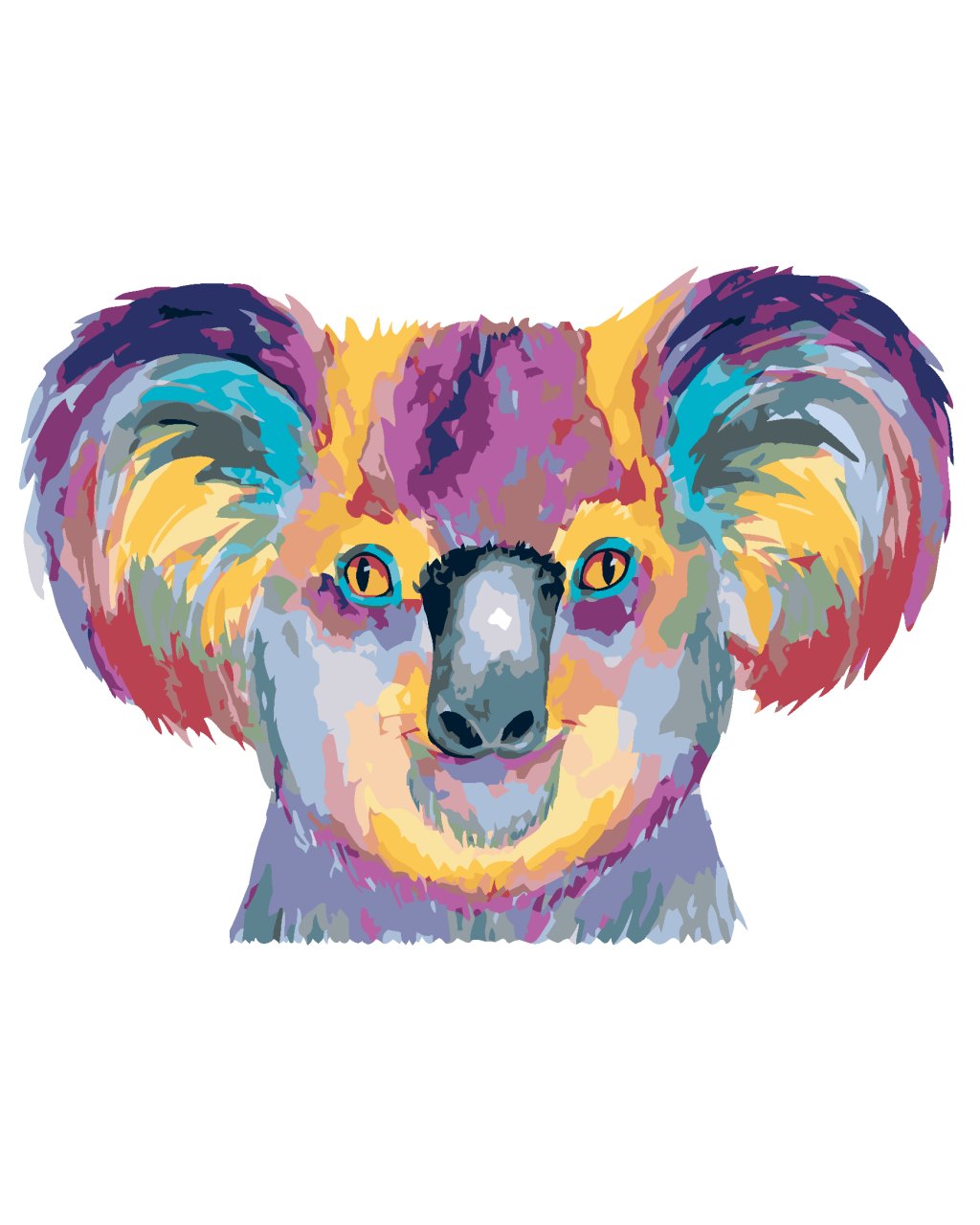 Maľovanie podľa čísel - FAREBNÁ KOALA NA BIELOM POZADÍ