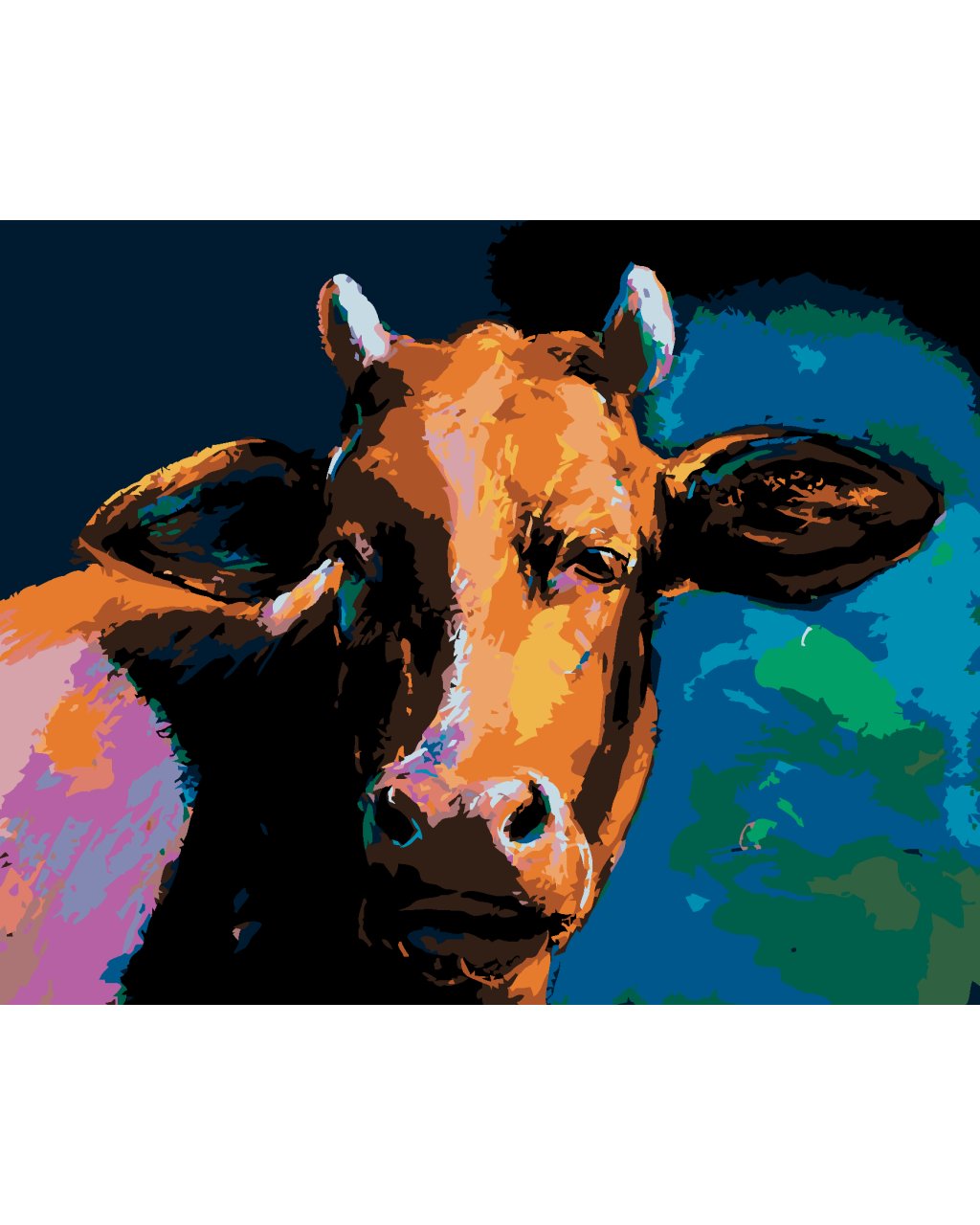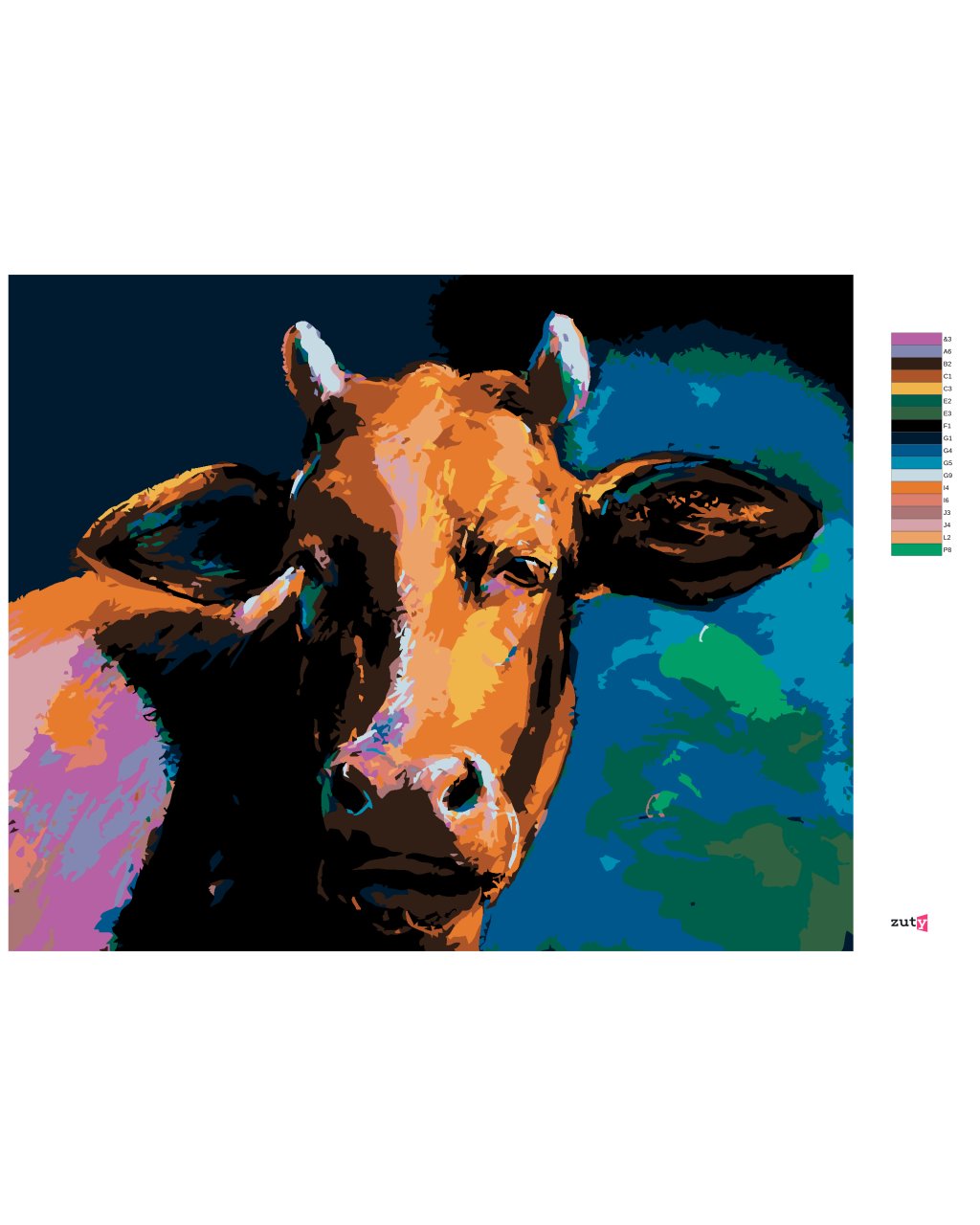 Maľovanie podľa čísel - FAREBNÁ KRAVA S TMAVÝM POZADÍM