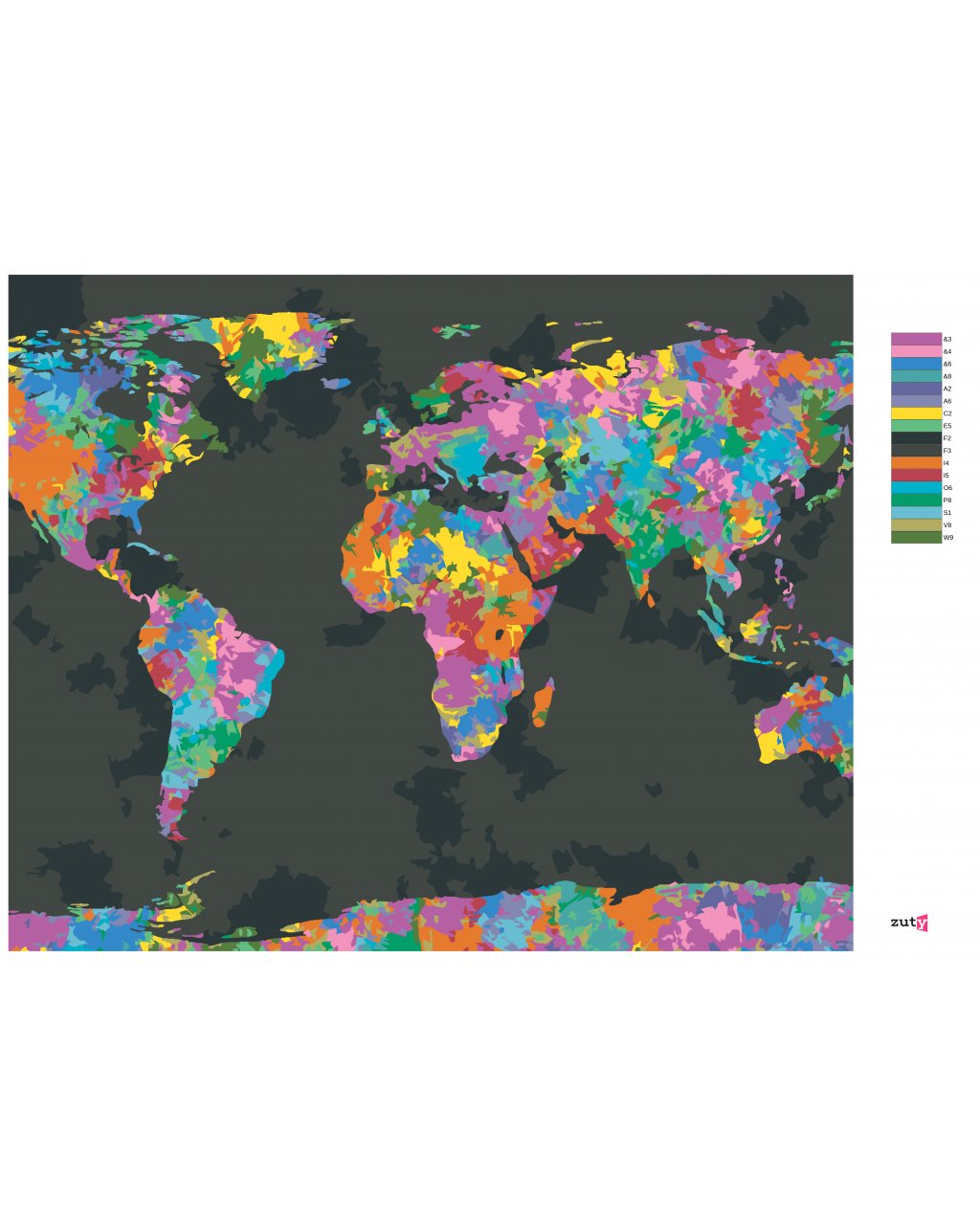 Maľovanie podľa čísel - FAREBNÁ MAPA SVETA